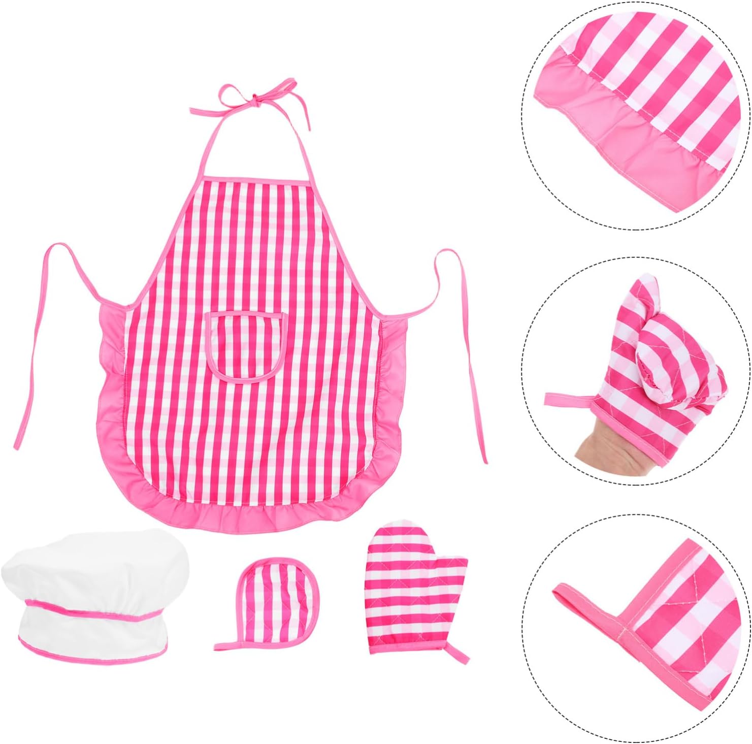 Materiale morbido: realizzato in tessuto morbido e traspirante, delicato sulla pelle, grembiule, grembiuli per per cucinare Comodo da indossare: realizzato in tessuto morbido e confortevole, delicato sulla pelle, grembiule per , grembiule Familiare: incoraggia a partecipare alle sessioni di cucina in famiglia, favorendo il tempo di , accessori per forno facili da cuocere, abbigliamento da chef Design accattivante: il design carino e dettagliato rende il set attraente per i giovani, grembiuli per dipingere, cappello da cuoco e grembiule Stimola l'interesse per la cucina: questo set è progettato per suscitare interesse per la cucina e la panificazione, grembiuli da cucina, set da cucina