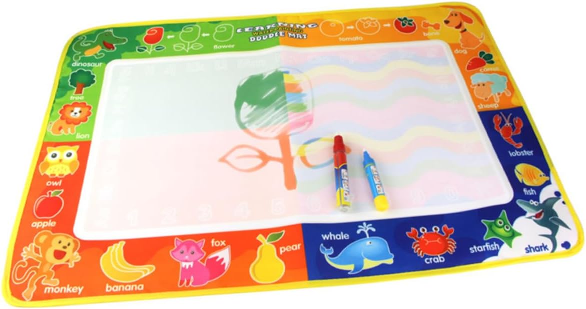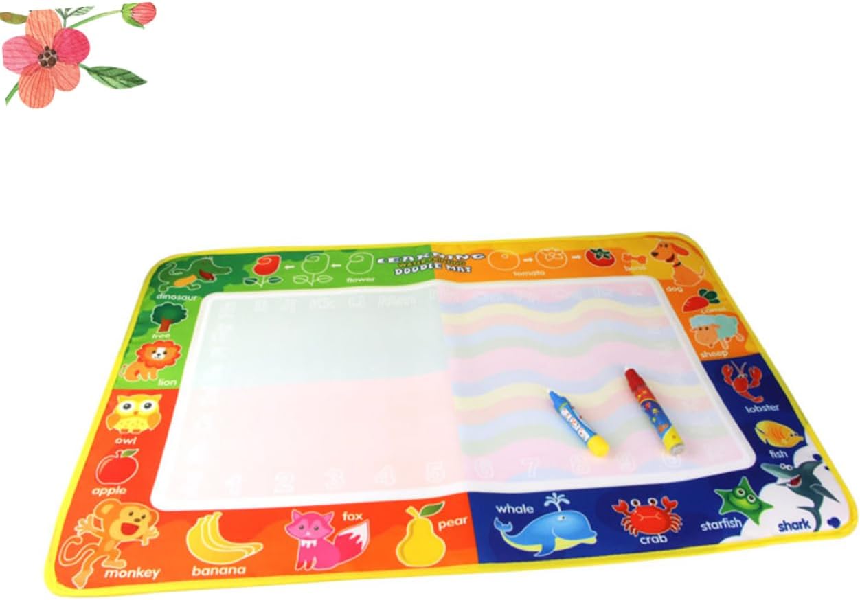 Tappetino da pittura per bambini: un fantastico giocattolo da dipingere per i più piccoli, un buon giocattolo di interazione per ragazzi e ragazze, tappetino da disegno per bambini Tappetino per pittura: può essere piegato in dimensioni compatte, portatile per interni ed esterni e viaggi, tappetino da disegno per bambini Tappetino per doodle d'acqua: con motivo a cartoni animati attorno tappetino, piacerà ai bambini, tappetino da disegno per bambini Tappetino da disegno per bambini: per attività di disegno e scrittura, esplorazione della creatività dei bambini, aule scolastiche, vacanze, imbottiture per calze di natale, ecc., tappetino da disegno per bambini Tappetino da disegno per bambini: riutilizzabile, facile da usare, basta riempire la penna con acqua pulita e disegnare sul tappetino, tappetino da pittura per bambini