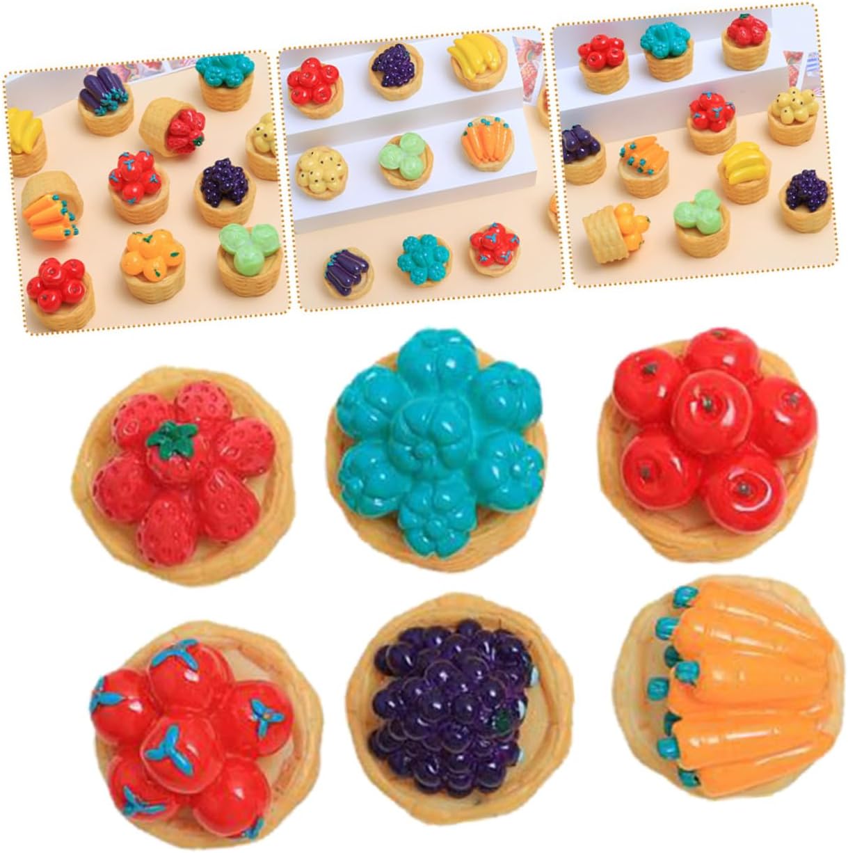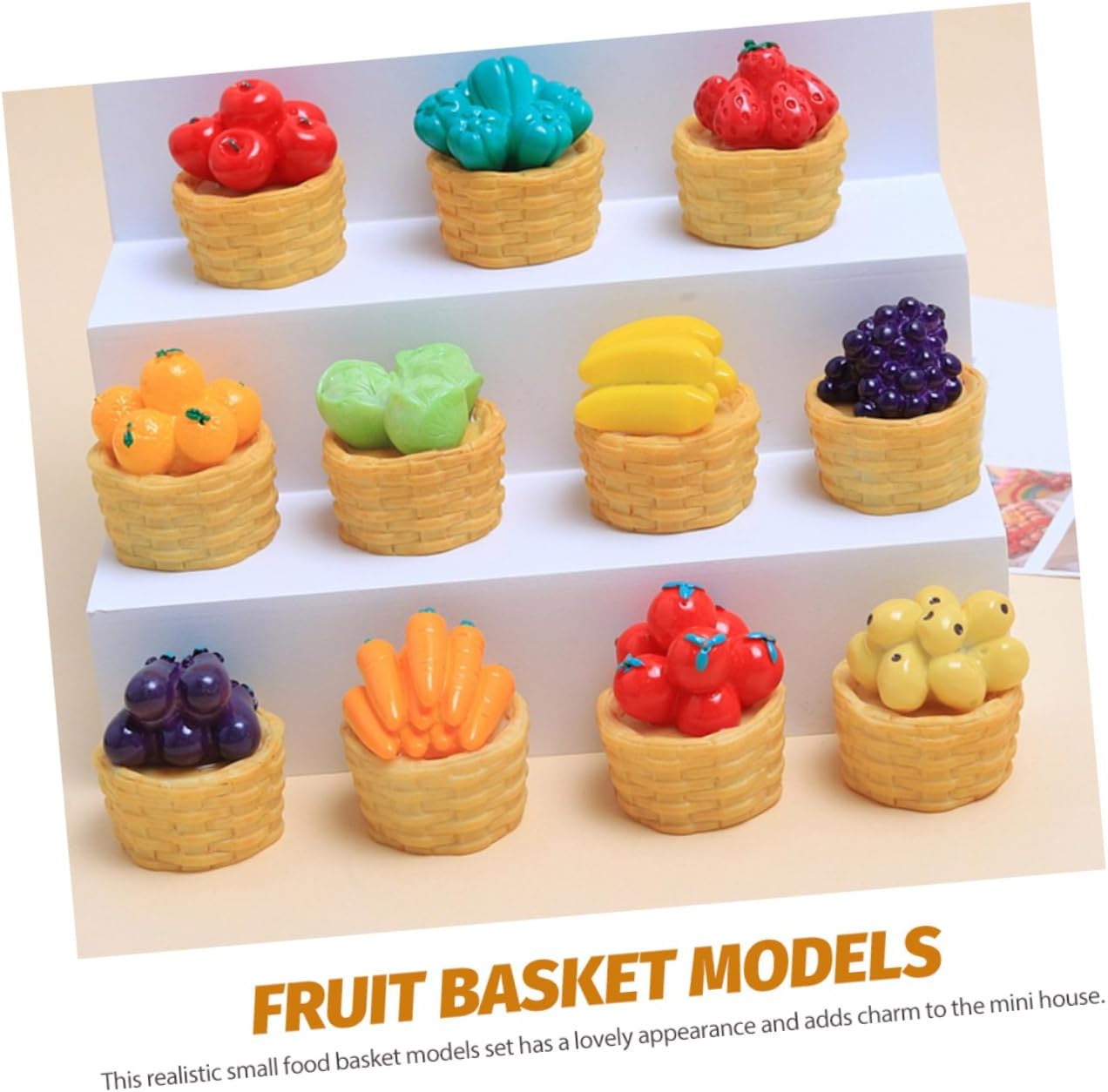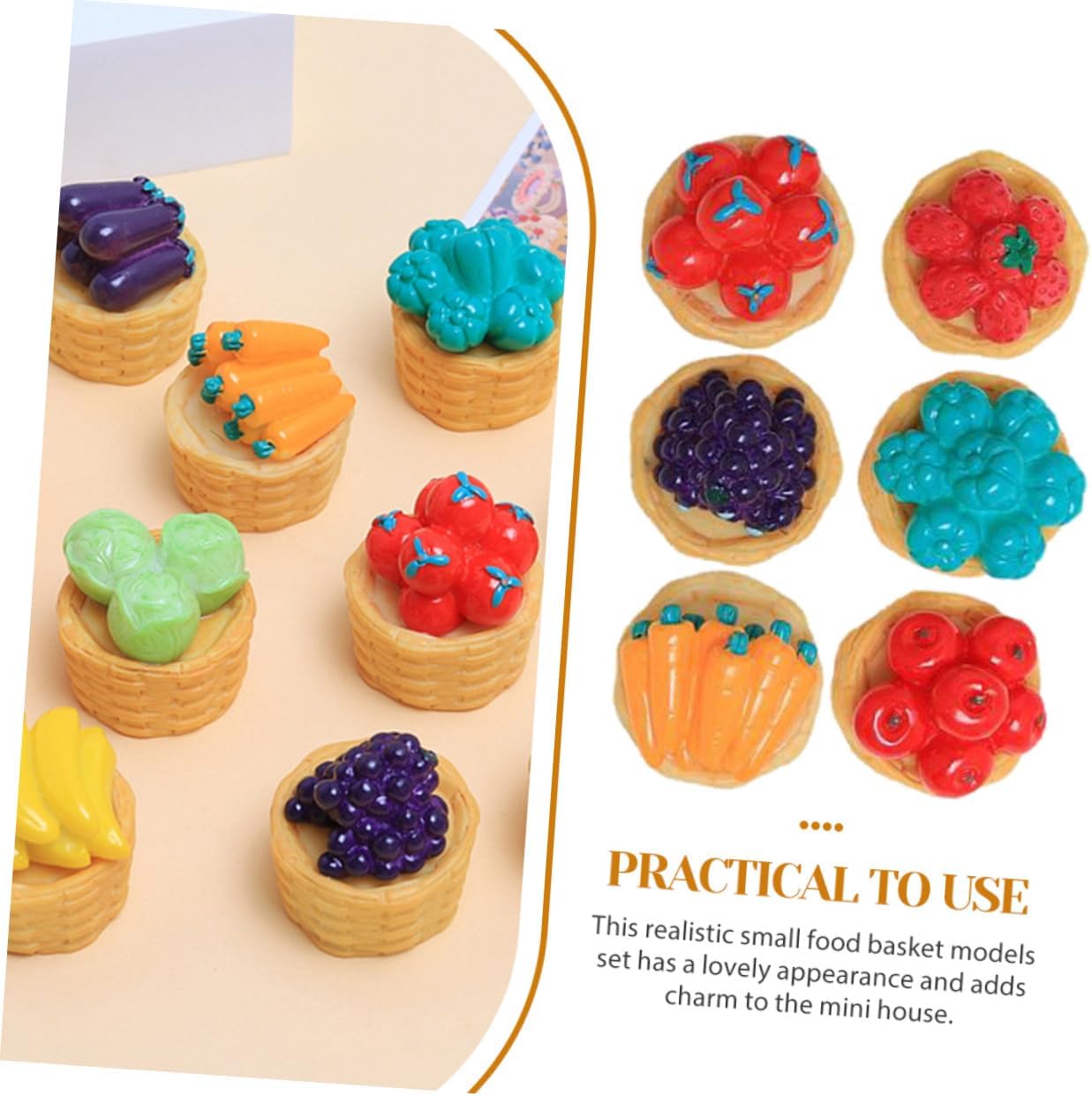 Modello di cesto di frutta decorativo: questo set di decorazioni fai da te include una varietà di verdure, serve per aggiungere un tocco di fascino e mobili realistici in miniatura. Decorazione del cesto di frutta in miniatura: realizzate con la massima attenzione ai dettagli e utilizzando materiali di qualità, queste figurine di cesto di frutta 3d sono progettate per offrire divertimento e durata duraturi, mini cesto di frutta. Decorazione di verdure mini casa: l'effetto realistico e visivamente sorprendente delle figurine 3d crea una sensazione accattivante e coinvolgente, adorabile cestino in miniatura. Ornamento per casa delle bambole: il mini cesto di frutta può aiutarti a coltivare la tua abilità pratica e la tua immaginazione fai da te, modelli di mini cestini. Decora il cestino in miniatura: questi squisiti e realistici accessori per la casa delle bambole di verdure sono decorativi per creare splendido paesaggio in miniatura, un cestino adorabile.