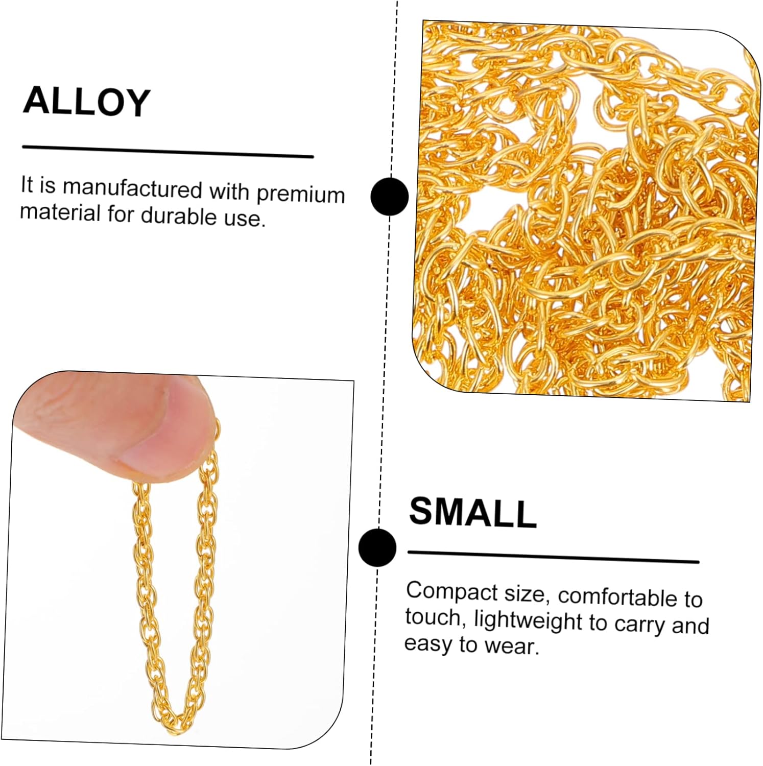 Mini catena per bambola: design elegante e alla moda, abbinabile alla tua bambola, collana giocattolo decorativa Collana da vestire: la lavorazione raffinata e l'aspetto creativo assicurano la sua popolarità e praticità, collana da bambola Catena d'oro per bambola: progettata con per vestire la tua bambola e il tuo giocattolo e renderli più alla moda, accessorio per collana Progettato in dimensioni compatte e leggere, facile e comodo da indossare, catena giocattolo Collana per bambola: l'eccellente fattura del nostro prodotto ti offrirà un'esperienza di utilizzo, collana giocattolo