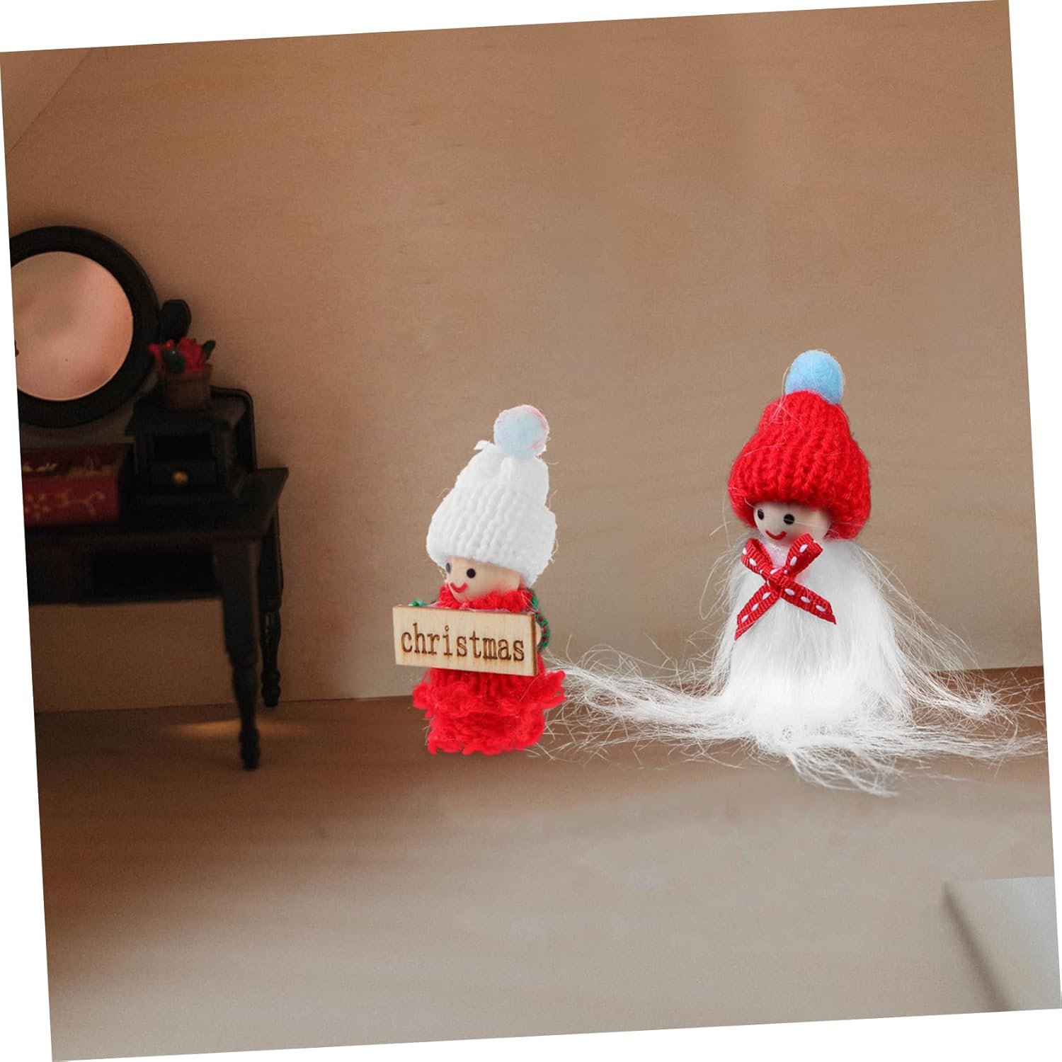 Ornamenti natalizi pendenti: puoi usare queste bambole per decorare la tua casa delle bambole o altre ambientazioni festive, come alberi di natale, ornamenti festivi Figure di persone delle case delle bambole: la combinazione di colori è ideale per creare una forte atmosfera vacanziera nella tua casa in miniatura, arredamento carino Bambole da giardino fatato: queste bambole sono fantastiche aggiunte alla tua collezione di case delle bambole, contribuendo ad arricchire la decorazione dell'ambientazione, le mini bambole Bambole di pezza: le mini bambole sono splendidamente realizzate e vestite con festivi, aggiungendo un tocco giocoso e adorabile all'ambientazione, decorazioni natalizie Decorazione dell'albero di natale: squisitamente progettate con meticolosa attenzione ad ogni dettaglio, queste bambole di natale sono delicate e creative, mini bambole che pendono ornamenti