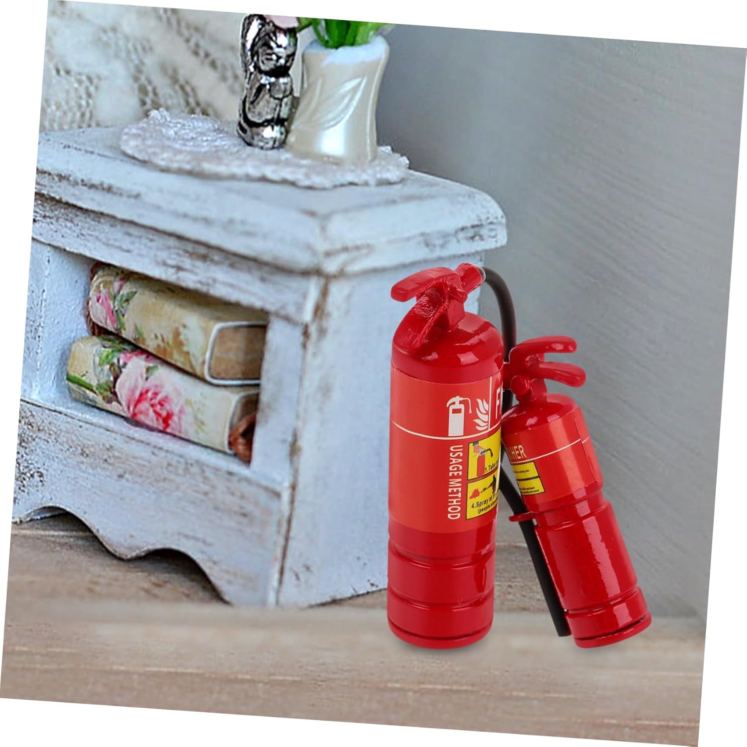 Giocattolo estintore: il materiale è sicuro e leggero, resistente all'usura e pratico per un uso duraturo, modelli di estintore in metallo Mini estintore: il mini ornamento è realizzato in materiale plastico con lavorazione delicata e buon effetto decorativo, giocattolo di finta pompiere Giocattolo spruzzatore estintore: dotato di un mini estintore, questo modello aggiunge un elemento realistico e pratico alla tua casa delle bambole, oggetti di scena per la fotografia Accessori per la casa delle bambole del pompiere: realizzato in plastica, questo ornamento in miniatura fornisce un tocco realistico ed elegante a qualsiasi della casa delle bambole, modelli di estintori per mini case Giocattolo pompiere: è una scelta di festival adatta per gli amici e puoi condividere con loro il divertimento di decorare mini case, estintore realistico