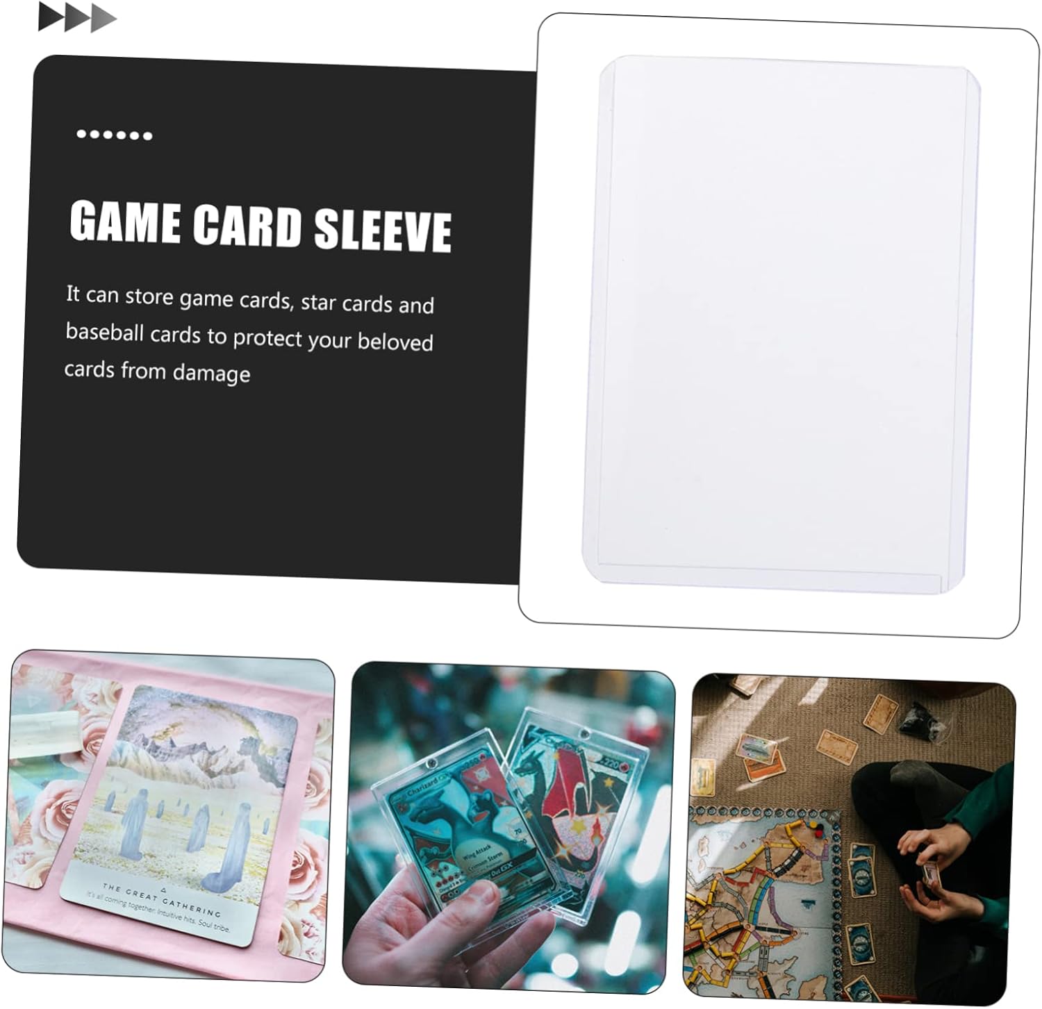 Protezioni per carte: la copertina della carta adotta un design dall'aspetto unico, comoda per riporre diverse carte, custodia per carte da gioco Copertina per carta rigida: design pratico, semplice e facile da usare, porta molta comodità nella vita quotidiana, buste per carte rigide Protezione per carte: realizzato in materiali pvc e sicuro, eccellente e protettivo per un uso prolungato, buste per carte da baseball Gusci di carte rigide: buona custodia per carte, per conservare e proteggere le tue carte da gioco da danni, guscio di carte rigide Coperture per la conservazione delle carte: può efficacemente impedire che il tuo tabellone di gioco venga danneggiato, meraviglioso e bello, giocando a copertura