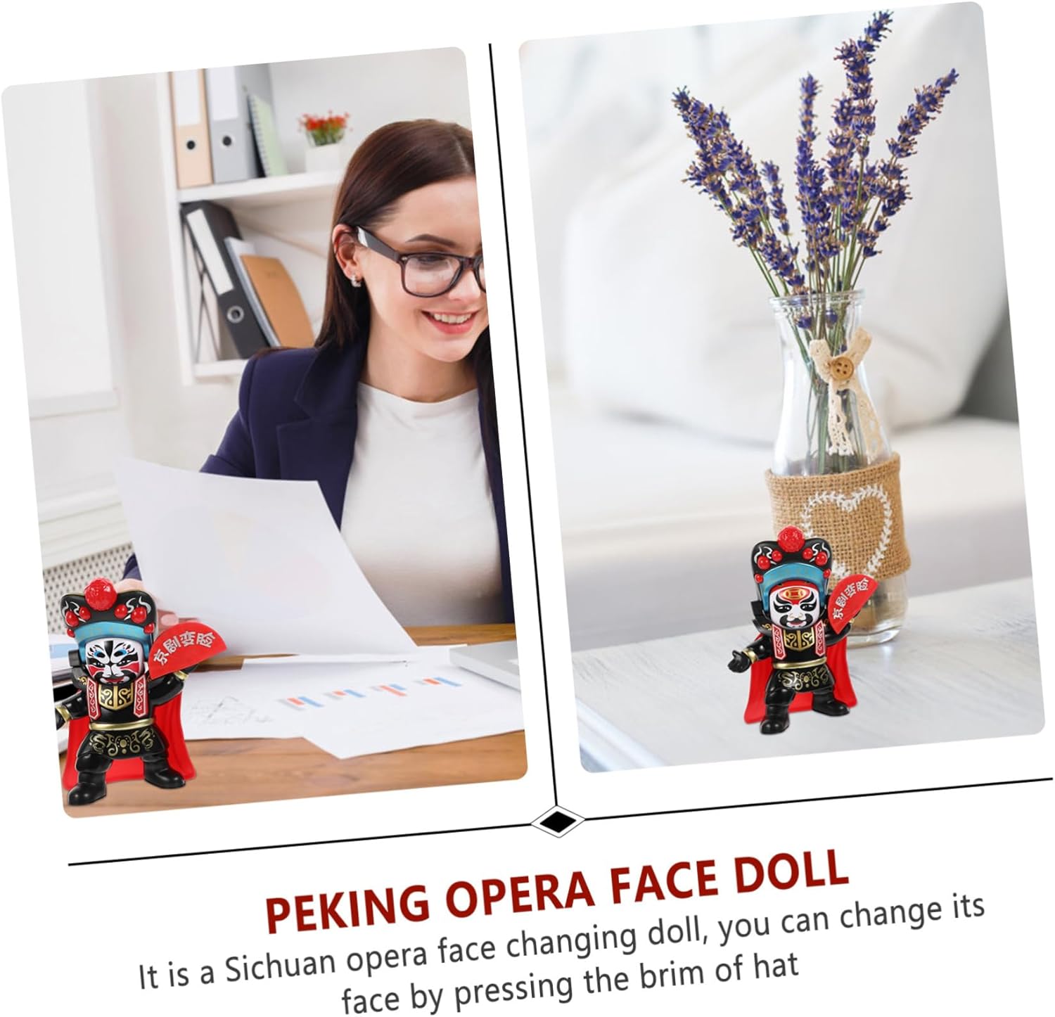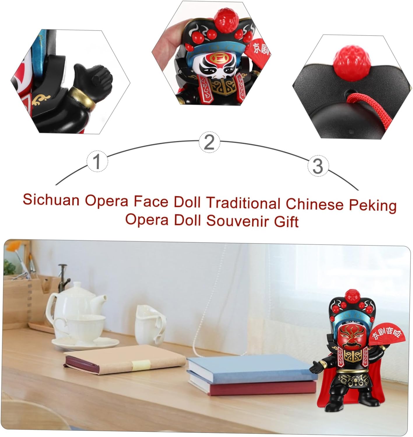 Giocattoli per automobili: decora il tuo desktop con questo divertente giocattolo. Cruscotto dell'auto: realizzato in plastica, aspetto liscio, buona sensazione. Figura della bambola dell'opera: può coltivare la coordinazione occhio-mano bambini. Opera di pechino: il design della bambola che cambia volto dell'opera del sichuan è pieno di creatività e dolcezza. Ricordo della mascotte cinese: fatto di plastica, aspetto liscio, buona sensazione.