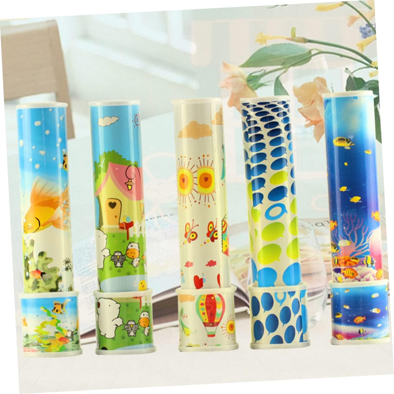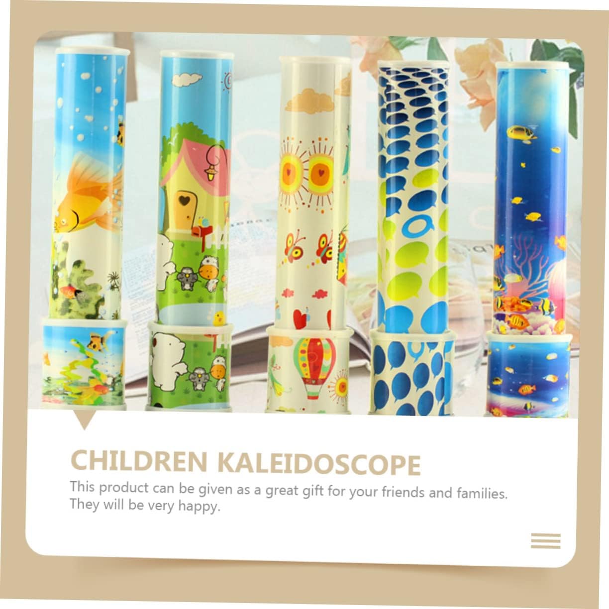 Il caleidoscopio è realizzato con materiali ABS, che è resistente e sicuro da giocare. Promuovono la visione, la presa, lo sviluppo intellettuale, l'emozione, lo sviluppo di altre abilità di Kid, le capacità di coordinamento degli occhi, ecc. Presenta il bell'aspetto che può essere molto facile attirare l'attenzione dei bambini. Dimensioni compatte, che è adatto ai bambini da afferrare e tenere e non faranno male ai bambini. Promuovono la visione dei bambini, la presa, lo sviluppo intellettuale, l'emozione, lo sviluppo di altre abilità, il coordinamento occhio-mano, ecc.