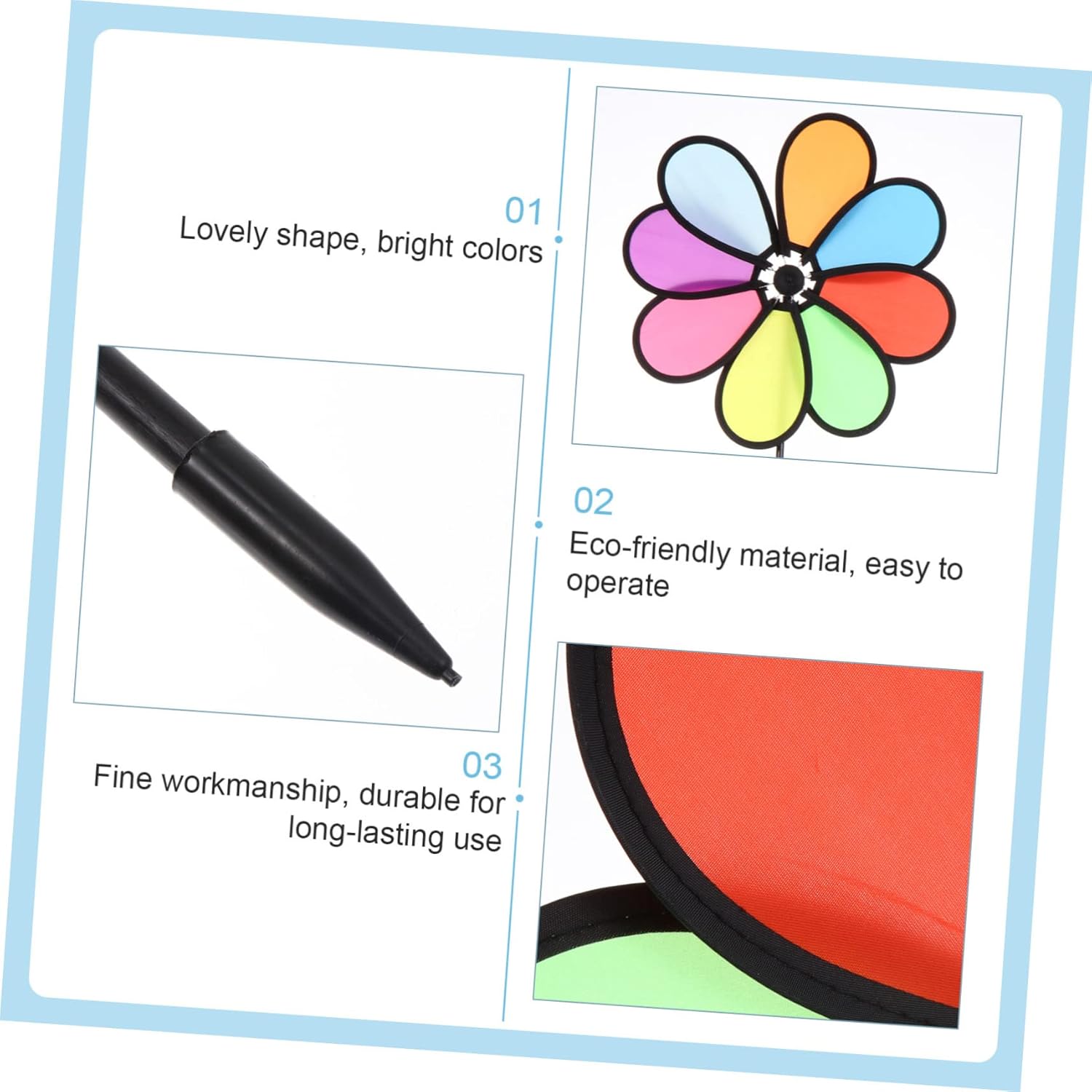 Decorazione di layout: è un perfetto per il tuo e può anche essere un bel premio per un carnevale o un concorso, decorazione del mulino a vento Mulino a vento rotante: realizzato in tessuto di alta qualità, pregevole fattura, durevole per un uso duraturo, oggetto decorativo Decorazione per esterni: questa girandola è adatta per l'uso esterno e renderà il tuo giardino speciale rispetto agli altri, giocattolo a forma di mulino a vento di girasole Giocattolo del mulino a vento: è realizzato in materiale di stoffa di alta qualità, durevole e di uso a lungo termine, giocattolo per Mulino a vento da giardino: il mulino a vento colorato può essere utilizzato per la vista sul balcone, disponibile per uso esterno, mulino a vento da parco