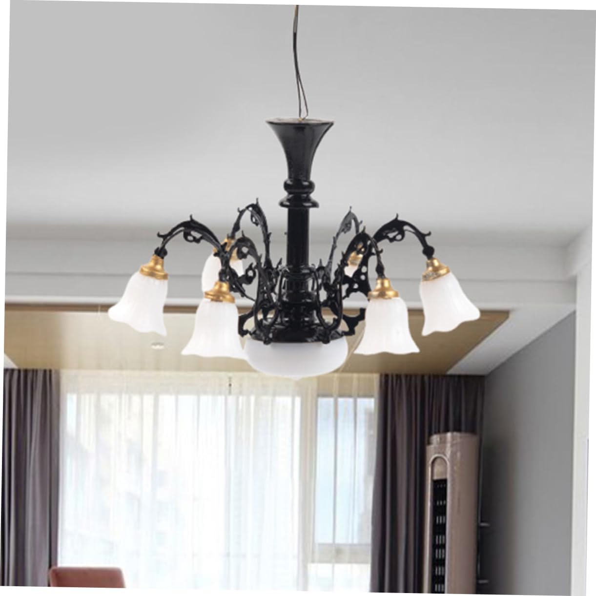Lampada a sospensione in miniatura: mini lampadario a sospensione multiuso può essere utilizzato per decorazioni di scene di vita in miniatura, lavori fai da te, ecc., lampadario per case delle bambole Luci a LED per case delle bambole: l'aspetto elegante e il design alla moda consentono alla lampada in miniatura di decorare meglio gli interni della tua mini casa, decorazioni in miniatura Piccola lampada da casa: superficie liscia, aspetto semplice e vivido, il lampadario in miniatura è decorativo, un mini ornamento per la casa, ornamenti Mini lampadario a led: l'illuminazione in miniatura può aggiungere bellezza alla tua mini casa, con brillanti, renderla adatta alla maggior degli stili di casa dei giocattoli, lampadario in miniatura della casa delle bambole Soffitto: questa mini lampada a sospensione è realizzata in abs e materiale metallico, robusta e decorativa per un uso duraturo, apparecchio
