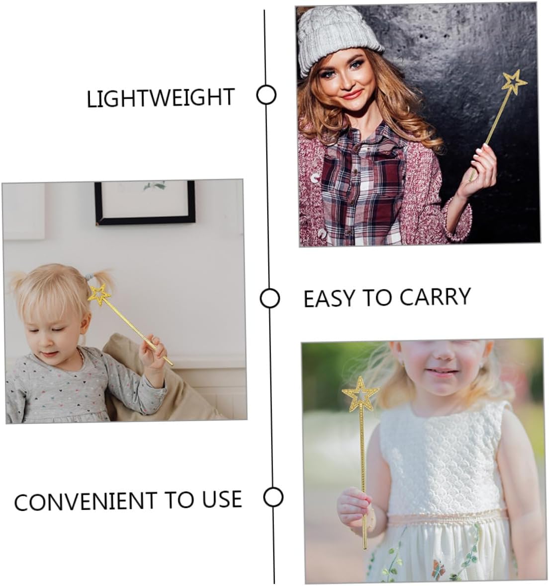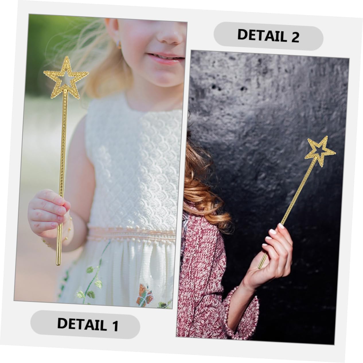 Magica a forma di stella: ideale per vestire te e i tuoi amici per feste di compleanno, spettacoli teatrali e altre occasioni, magica per il palco Bacchette magiche da ragazza: il magico creativo può abbinarsi ai tuoi vestiti per rendere il tuo aspetto più bello, per cosplay Bacchette magiche portatili: a forma di stella, decorative e creative, possono rendere la tua festa più fiabesca, bastoncini di fata stellare Bastoncini di fata a forma di stella: questa magica è molto adatta per giocare a fate, fate, elfi alle feste di halloween o altri festival, magica originale Accessorio per feste cosplay: la magica delle fate può essere utilizzata come accessorio per feste cosplay per concerti, balli, feste e fotografia, bacchette magiche delle fate delle stelle