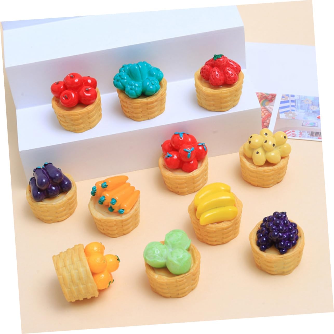 Decorazioni per la frutta della casa delle bambole: questo realistico set di modelli di cestini per alimenti ha un aspetto adorabile e aggiunge fascino alla mini casa, adorna il cestino in miniatura Accessori per la casa delle bambole: pregevole fattura e aspetto realistico, e questo piccolo cestino e cibo possono attirare l'attenzione degli adolescenti, ornamento del cestino in miniatura Modello mini cestino per verdure: gli accessori realistici per la casa delle bambole servono per creare una scena realistica nel paesaggio della tua casa delle bambole, cestino in miniatura per l'artigianato Mini decorazione di verdure per la casa: con un aspetto realistico, questo set di giocattoli attira i tuoi ragazzi a giocare e può essere utilizzato come cestino decorativo, mini decorazione per la casa Modelli di mini cestini: il mini cesto di frutta può aiutarti a coltivare la tua abilità pratica e la tua immaginazione fai da te, mini verdure domestiche