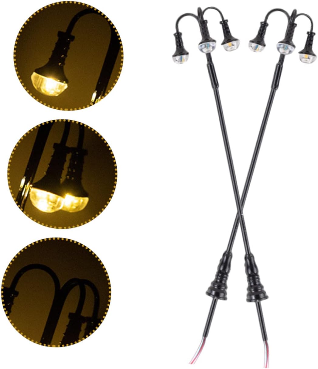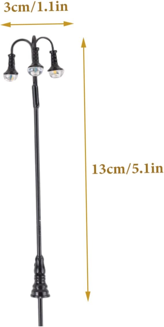 Giocattoli per l'esterno: lanterna del percorso del villaggio, l'ornamento del modello di lampione in miniatura è realizzato in materiale sicuro e affidabile, pratico da usare. Modello mini lampione: applique per casa delle bambole micro lampada paesaggistica paesaggio in miniatura decorazioni per lampioni stradali a 3 teste di utilizzo , una buona decorazione in miniatura, in particolare decorazioni paesaggistiche per mini case. Piccolo lampione: lavorazione eccezionale, design ragionevole, stabile e pratico, ti offriranno una buona esperienza d'uso. Lampade da tavolo rustiche: l'arredamento della scena del tavolo di sabbia posizionalo nella tua mini casa o stanza per dettagli più realistici, rendi la mini casa più affascinante. Mini lampada da tavolo: ✨molto utile per il layout e la costruzione di modellini di treni, il layout di stazioni ferroviarie, case in miniatura di sabbia. questo modello di mini lampione può essere un ornamento decorativo per la tua mini casa o giardino.