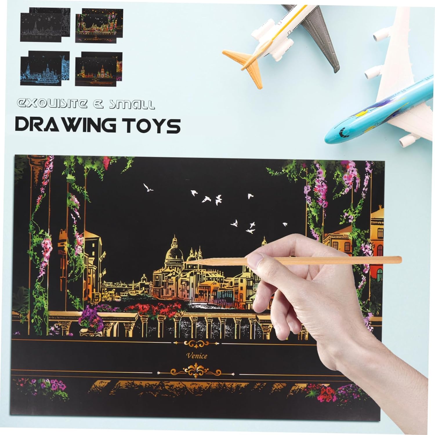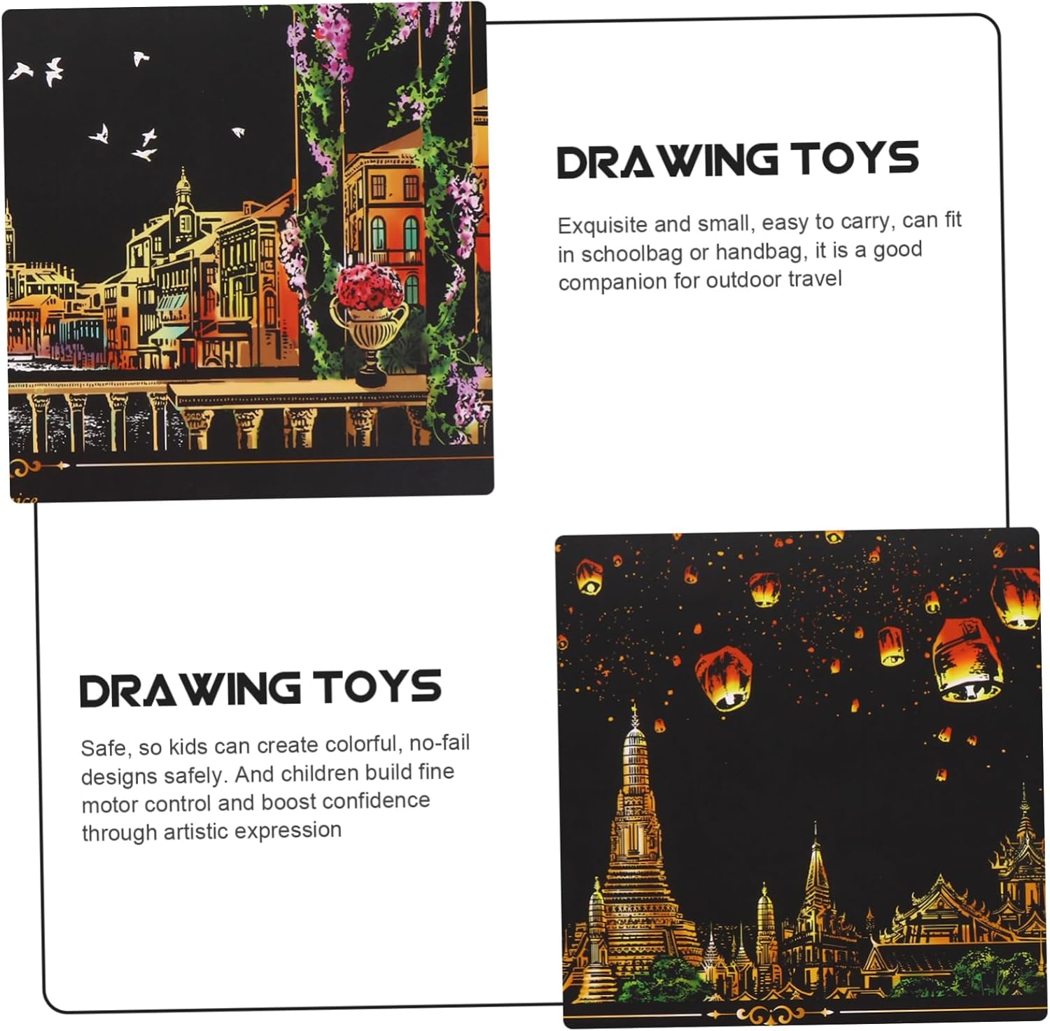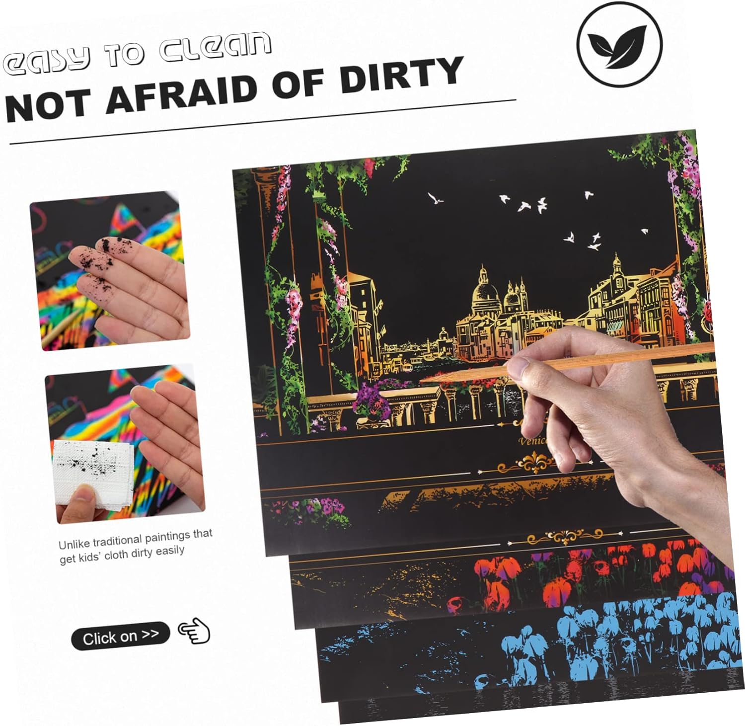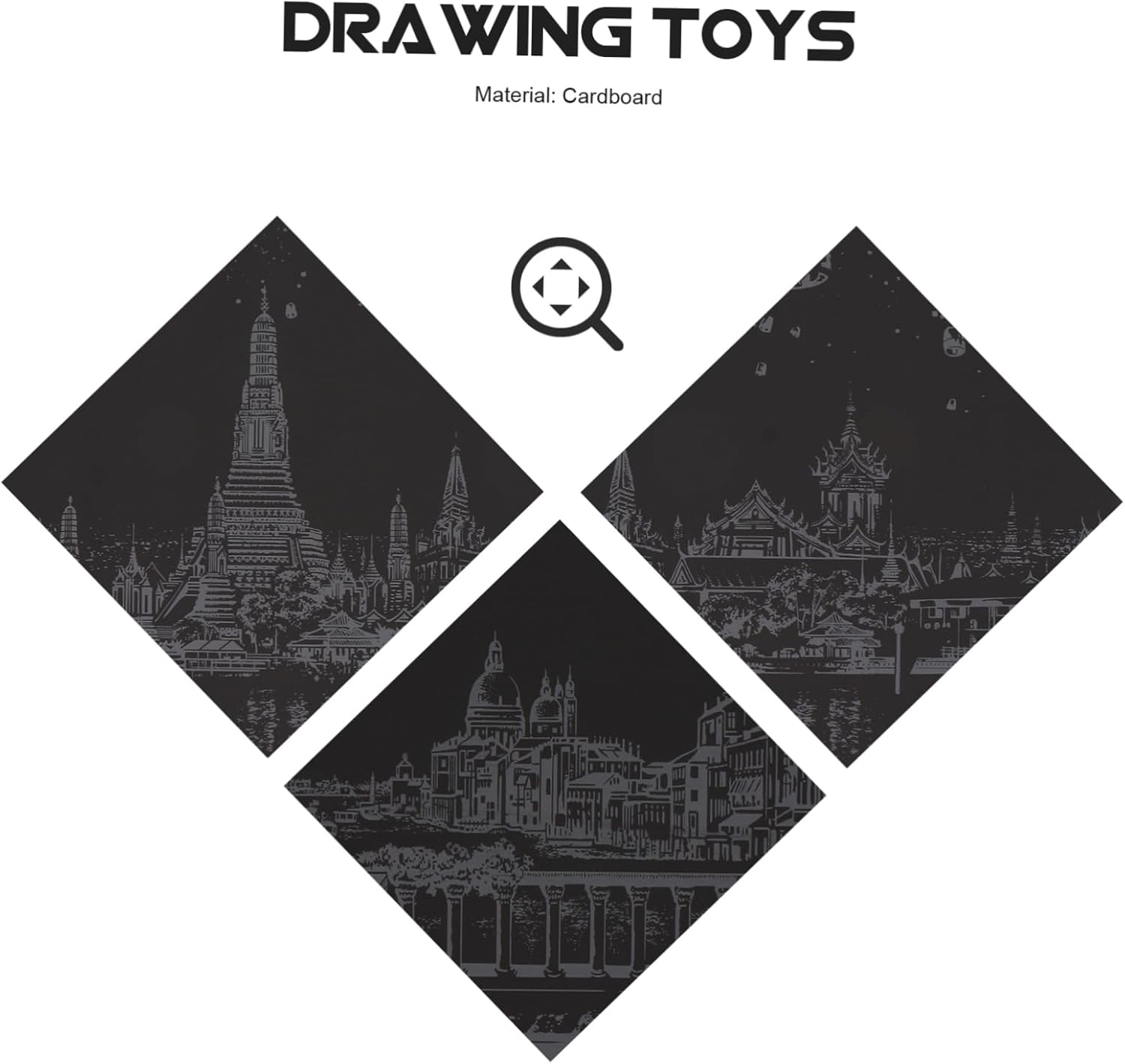 Gratta e vinci dipinti a mano: squisiti e piccoli, facili da trasportare, possono stare nello zaino o nella borsa, è un buon compagno per i viaggi all'aperto, gratta e vinci gratta e vinci con scene notturne Gratta e vinci, artigianato artistico: può essere con cornice, usato come ornamento da tavolo, decorazione da parete o può scrivere parole di benedizione per la tua famiglia e i tuoi amici, gratta e scrivi un giocattolo da dipingere Gratta e vinci con scena notturna per bambini: puoi riposarti e rilassarti attraverso questa interessante attività creativa, questa arte raschiante è esattamente ciò di cui hai bisogno, semplice, ricreativa, antistress, carta da grattare arcobaleno Carta da grattare nera: sicura da usare, così i bambini possono prendersi il loro tempo per giocare, pensare, testare e prepararsi per i loro capolavori, giocattolo di carta da grattare Gratta e vinci vuoti: questo set stimola l'immaginazione attraverso un metodo semplice e veloce, permettendo ai bambini di essere coinvolti nella creazione e coltivare un artista, gratta e vinci con scena notturna della città