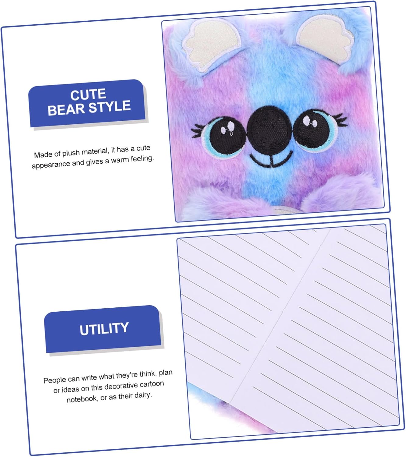Diario di peluche: il taccuino di peluche è di piccole dimensioni, leggero, non occupa molto spazio ed è facile da trasportare, accessorio per ragazze Diario per uso quotidiano: questo morbido quaderno decorativo e adorabile è squisitamente realizzato, ampiamente amato dalla maggior delle persone, libro di registrazione Fornitura per ragazze: la copertina creativa con motivo animale di peluche ti regalerà un'esperienza meravigliosa e porterà gli studenti buon umore, taccuino multifunzione Taccuino con cartoni animati: taccuino di carta con adorabile motivo in peluche, sfocati e fantastici, taccuino Taccuino per uso quotidiano: con un guscio con motivo a cartoni animati, questo taccuino sembra molto squisito e adorabile, un bel diario unisex a cartoni animati