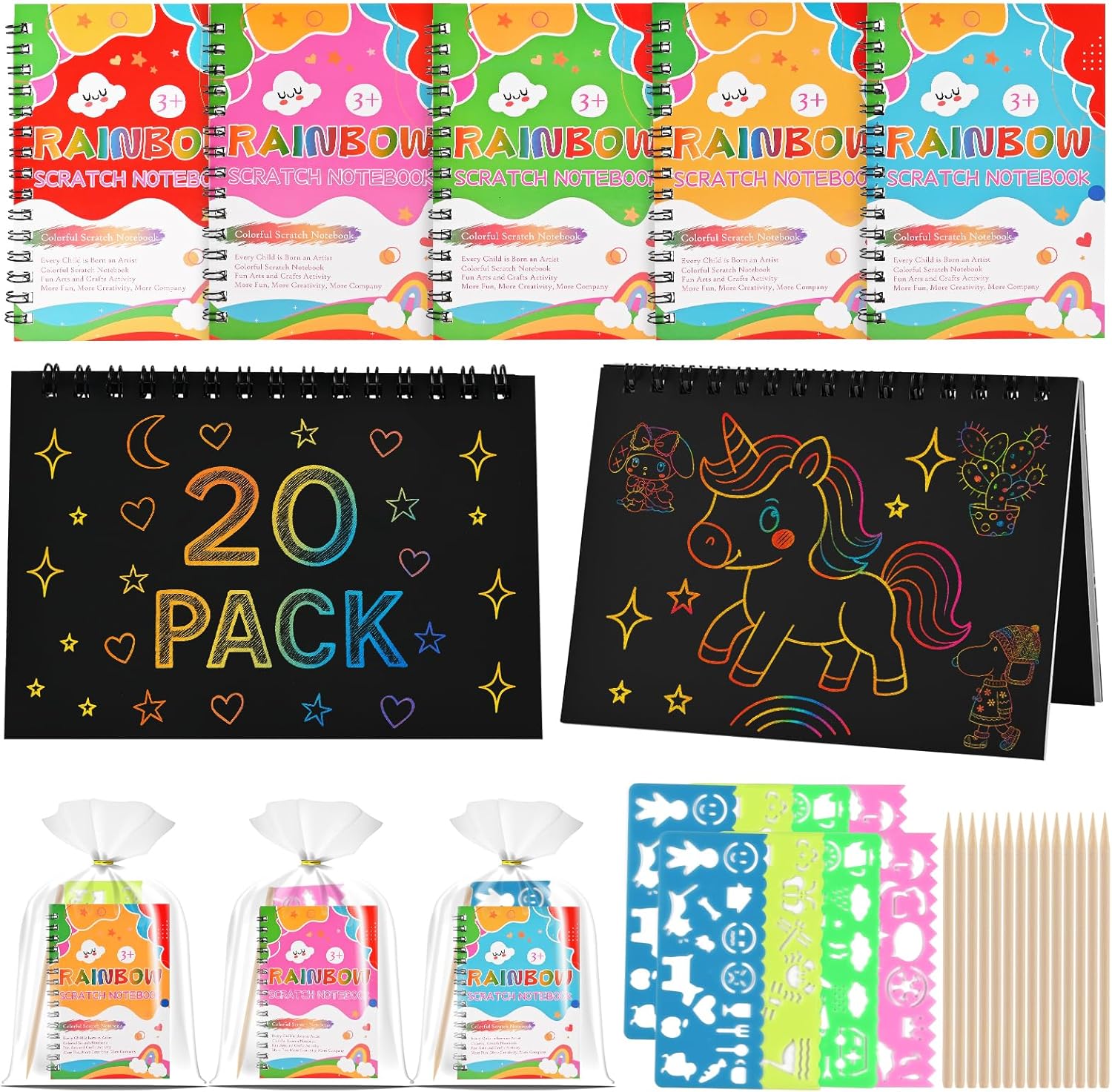Gratta e vinci fai da te: è un ottimo incoraggiamento per i tuoi bambini a scrivere note divertenti e disegnare immagini l'uno per l'altro, dipinti da grattare fai da te Kit di gratta e vinci per bambini: coltivare le abilità pratiche dei bambini è una buona scelta per i bambini, un bel giocattolo per loro, forniture di carta da grattare Carta da disegno per bambini: usa il pennarello per grattare schizzi di grigio, rivelando bellissimi colori sottostanti, gratta note Carta per dipingere libri: quantità sufficienti, in modo che gli articoli possano soddisfare le diverse esigenze fai da te, carta per dipingere i bambini Carta da pittura per bambini: offri un modo di gioco speciale, i bambini l'opportunità di modificare e giocare più felicemente, gratta e vinci per bambini