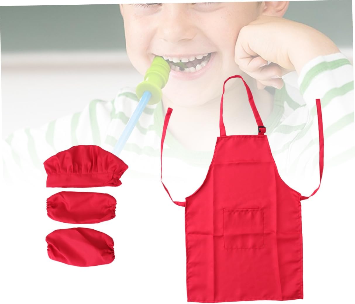 Cappello per bambini: questo set da chef per bambini include tutti gli accessori, come cappello, grembiule e polsini. Set da gioco per chef per bambini: tessuto spesso e liscio, facile da decorare con pennarelli, stiratura o ricamo. Polsino da cucina per bambini: costume divertente e funzionale. i bambini possono fare giochi di ruolo e fingere di aiutare mamma e papà in cucina, il vestito li rende adorabili e previene l'olio o le bruciature. Custodia da cucina per bambini: ideale per cucinare, dipingere, cuocere al forno o decorare feste. porta più divertimento e sorpresa per i bambini. Grembiule per bambini: realizzato in materiale, il set da chef è durevole e di lunga durata. inoltre, è facile e comodo da pulire.