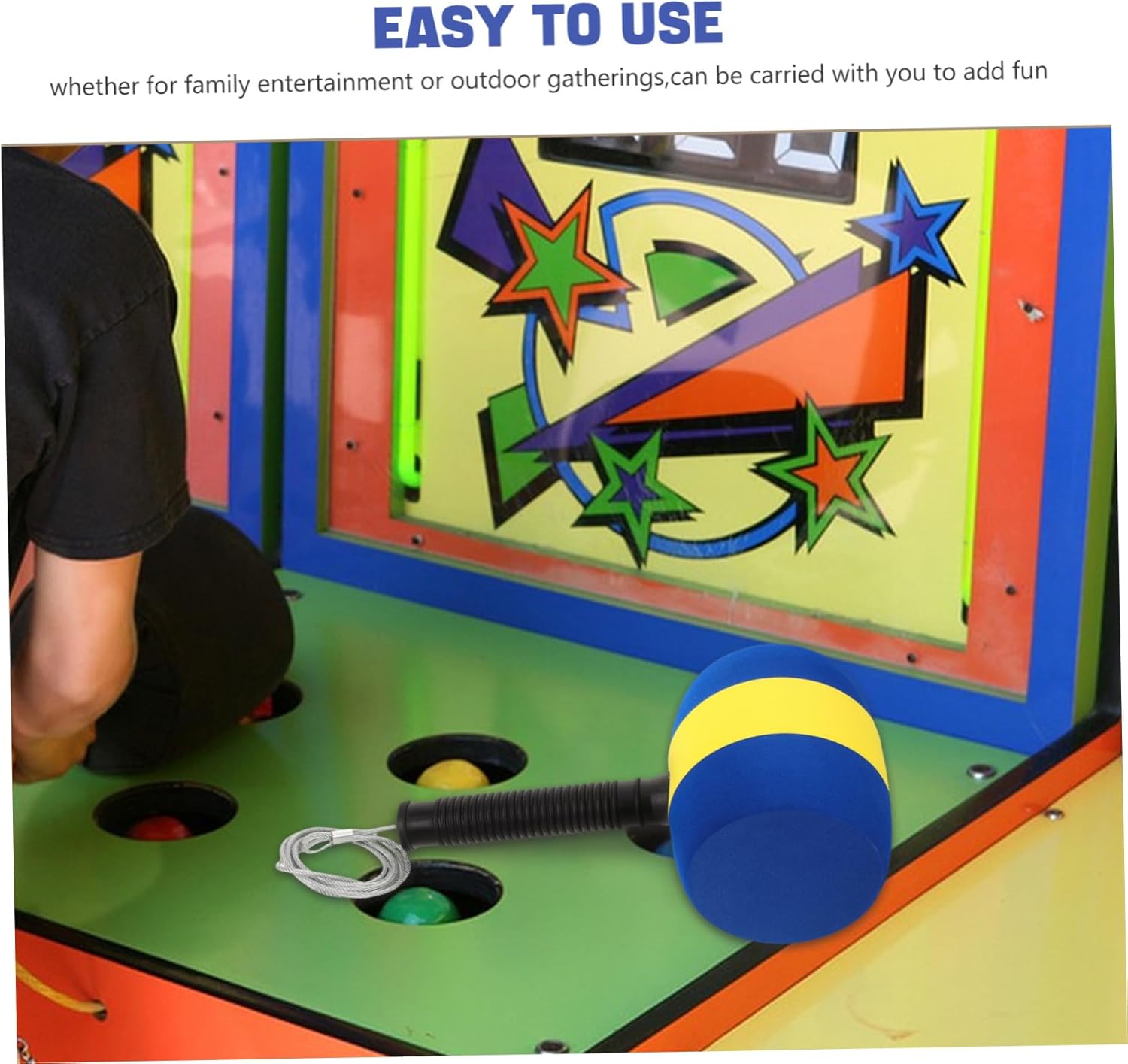 Maneggevolezza confortevole: progettato ergonomicamente per ridurre l'affaticamento della mano, consentendo sessioni lunghe e confortevoli, martello , martello Precisione migliorata: progettato per colpi precisi, migliora gameplay garantendo ogni colpo preciso e soddisfacente, per , martello legno Aspetto accattivante: design luminoso e colorato del martello attrae i giocatori, rendendo accattivante visivamente, colpisci una talpa, martello Compatibilità : si adatta a varie macchine da con talpa, rendendo facile la sostituzione e prolungando la durata della attrezzatura da , martelli per martellate, da con talpa Materiale confortevole: realizzato in materiale schiumoso, martello offre un tocco morbido, riducendo l'affaticamento della mano, martellamento del martello, martello per