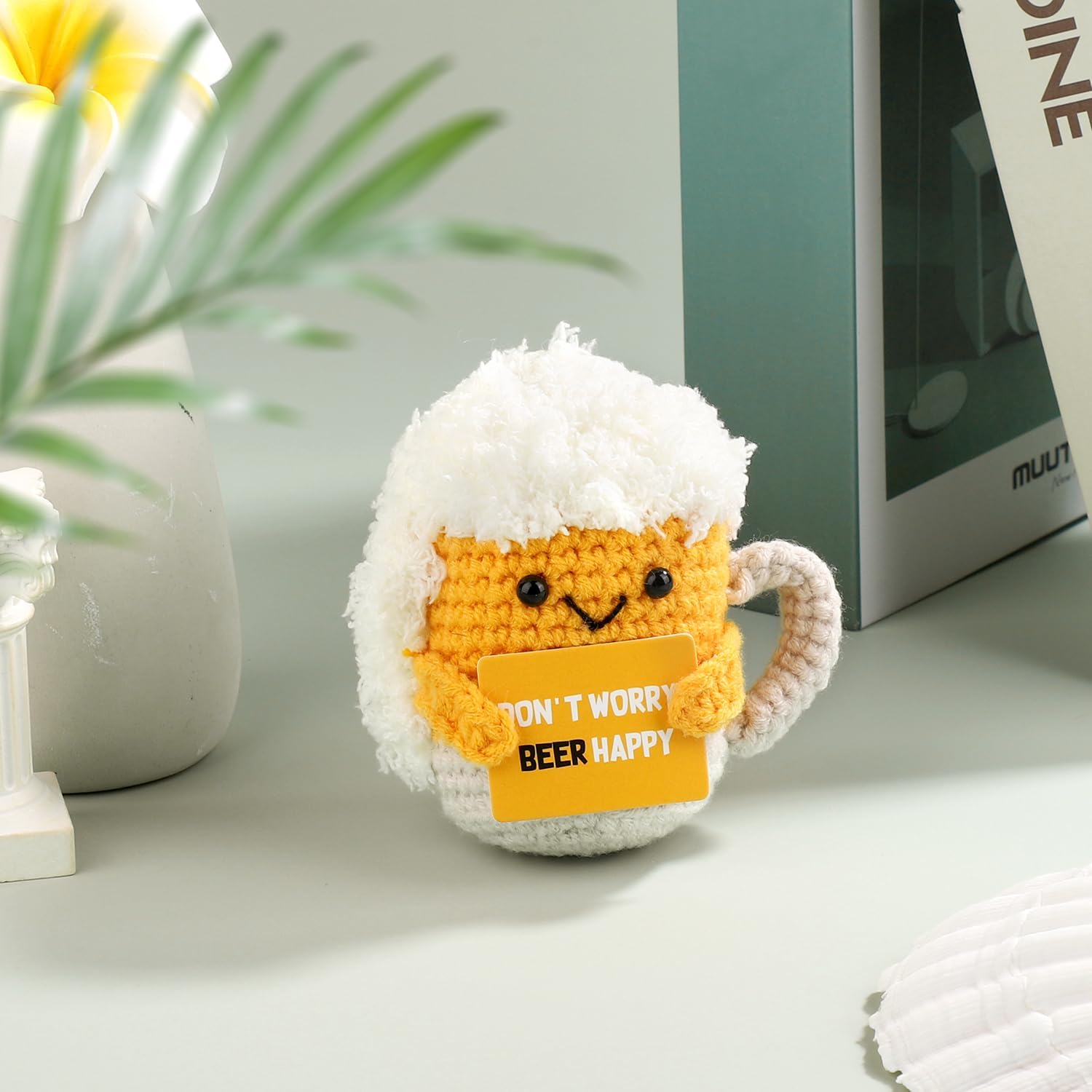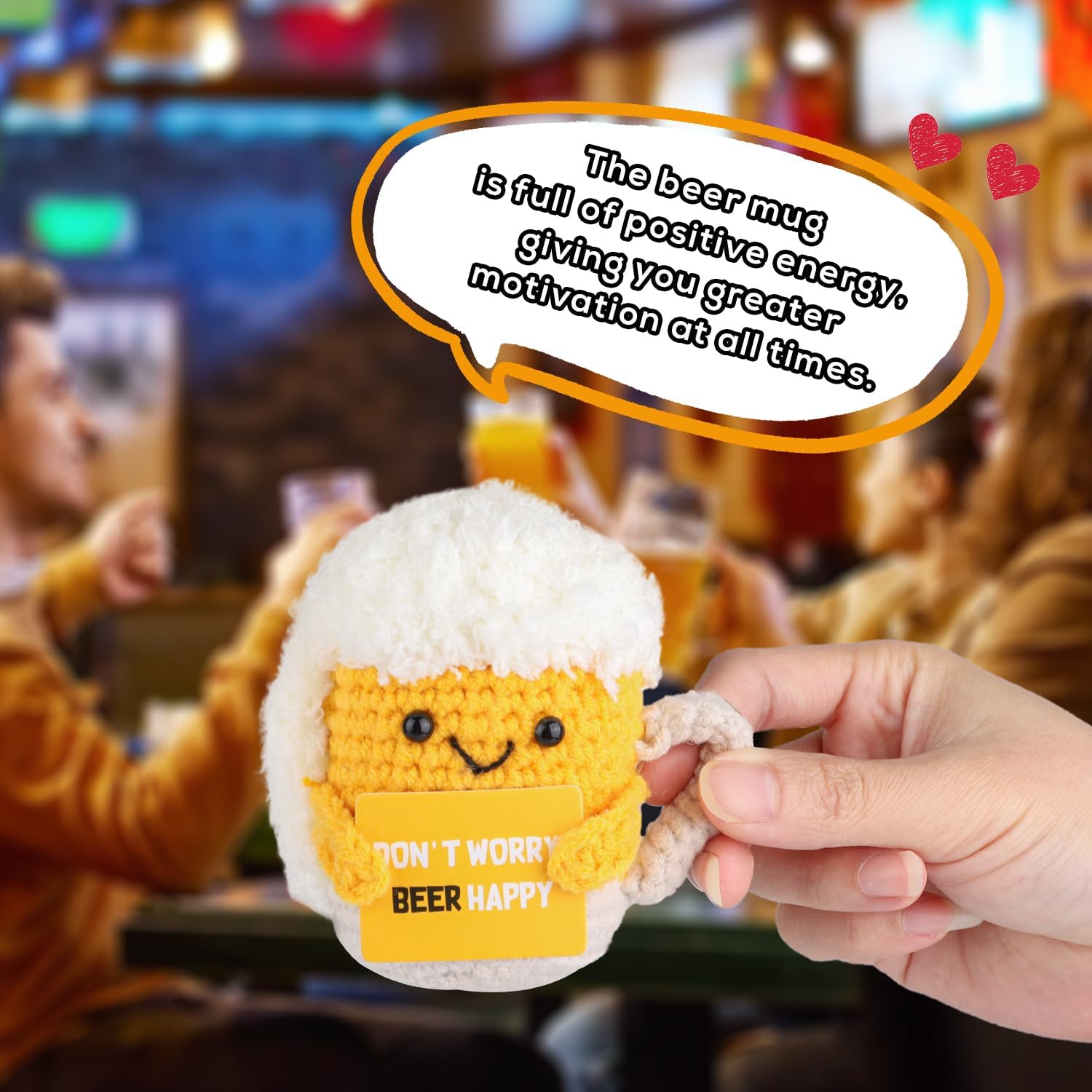 Prodotto incluso: riceverai 1 pezzo di boccale di birra positivo. La dimensione è di circa 8x8,5 cm, la dimensione perfetta da mettere nello zaino, accompagnandoti ovunque in qualsiasi momento. Materiale affidabile: il boccale da birra dall'atteggiamento positivo è realizzato in filato di lana di qualità in più colori, morbido e confortevole al tatto. Tornerà rapidamente al suo aspetto adorabile quando lo pizzichi. Design innovativo: prendendo come ispirazione il boccale di birra, abbiamo progettato e realizzato questa simpatica bambola da birra all'uncinetto per le persone che amano bere birra. Ha in mano una piccola carta con un divertente incoraggiamento, incoraggiandoti quando ti senti frustrato. Ornamento speciale: il boccale di birra lavorato a maglia può essere utilizzato per decorare la scrivania, il mobile TV, il comodino e altro ancora. Il suo aspetto speciale del boccale di birra può creare un'atmosfera divertente per questi luoghi. Ottimo regalo: il boccale di birra positivo è un ottimo regalo per i tuoi amici e familiari a cui piace bere birra. Il suo aspetto affascinante e le interessanti parole ispiratrici sulla carta possono portare loro il buon umore.