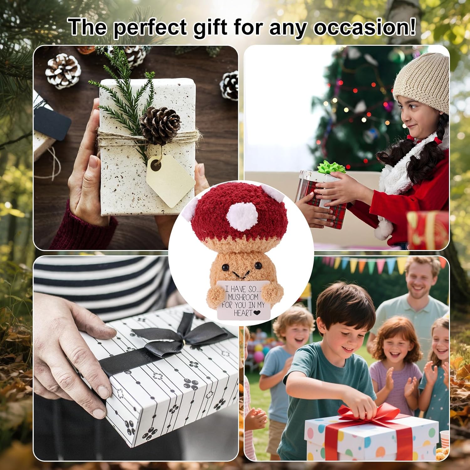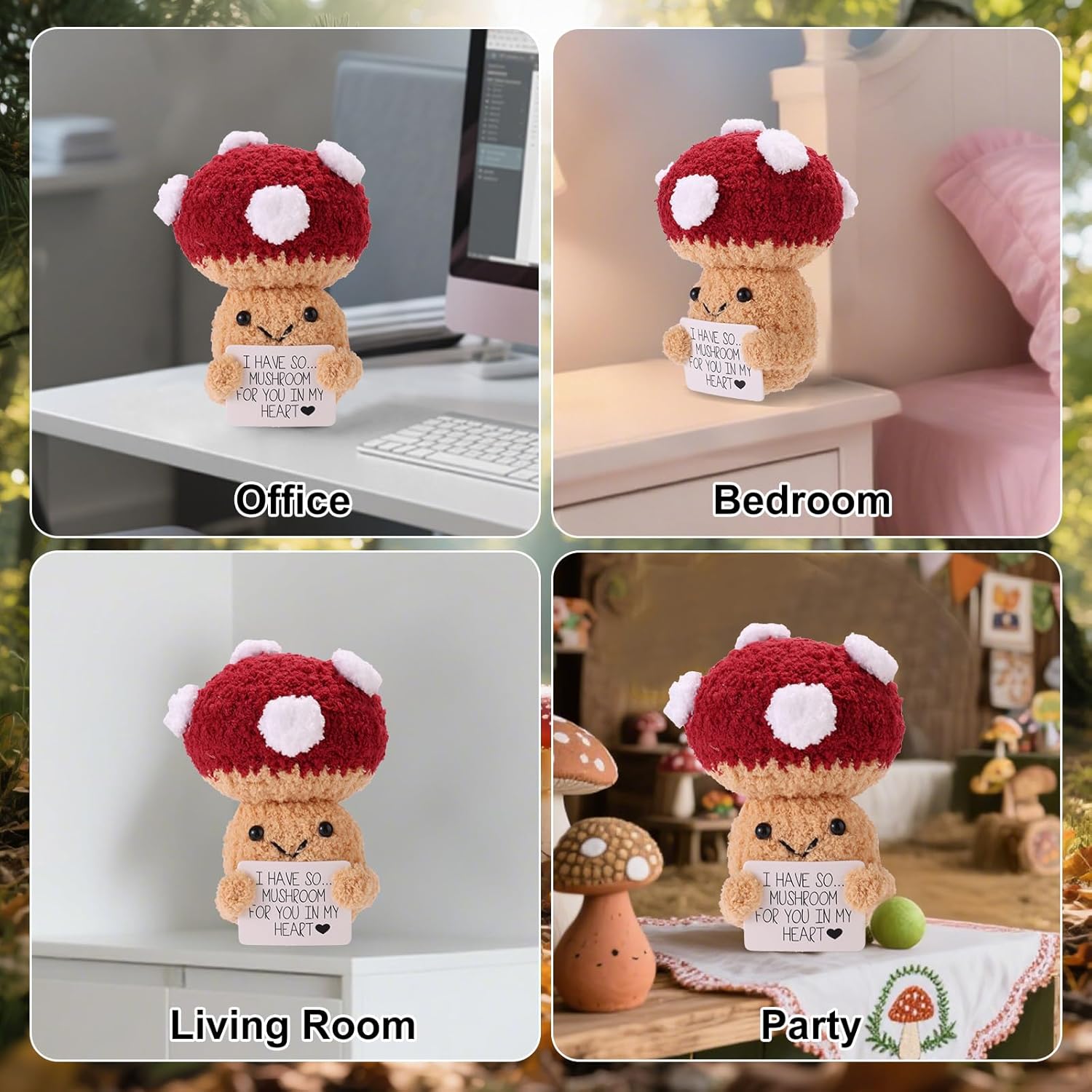 Contenuto della confezione: riceverai 1 pezzo di gancio a fungo positivo, che tiene in mano una piccola carta con parole incoraggianti, diffondendo calore e positività quando ti senti giù. Materiale di qualità: realizzato a mano con filato di alta qualità, il fungo positivo è morbido e confortevole al tatto. I suoi filati non si sbrogliano o sbiadiscono facilmente, sono affidabili e robusti. Design unico: con i funghi come tema di design, abbiamo progettato e realizzato all'uncinetto questo esclusivo fungo all'uncinetto. Ha un grande cappello rosso con punti bianchi e un gambo paffuto, che sembra carino e divertente. Ottima decorazione: il fungo all'uncinetto può decorare qualsiasi angolo vuoto della tua casa, come un mobiletto o una cassettiera, un mobile TV, un tavolo da divano o un corridoio, aggiungendo una sorta di atmosfera divertente. Regalo fantastico: l'uncinetto a fungo positivo è un regalo fantastico per i tuoi amici o familiari importanti per esprimere il tuo amore per il tema. Il suo aspetto adorabile e la carta di incoraggiamento possono sollevare il morale quando sono depressi.