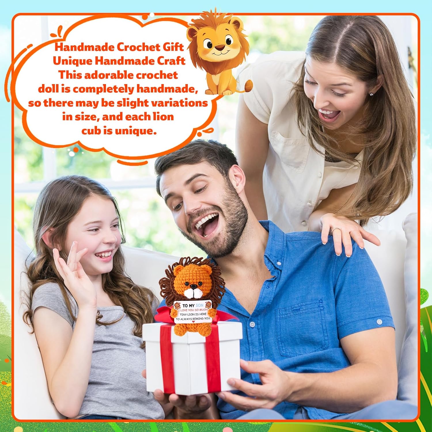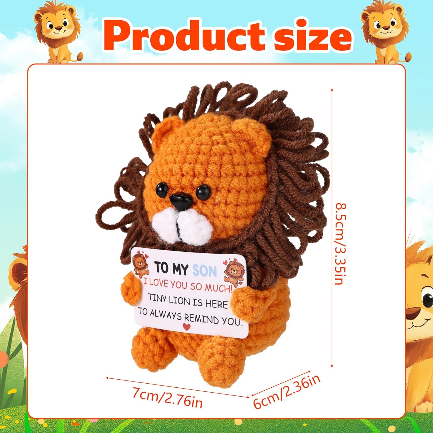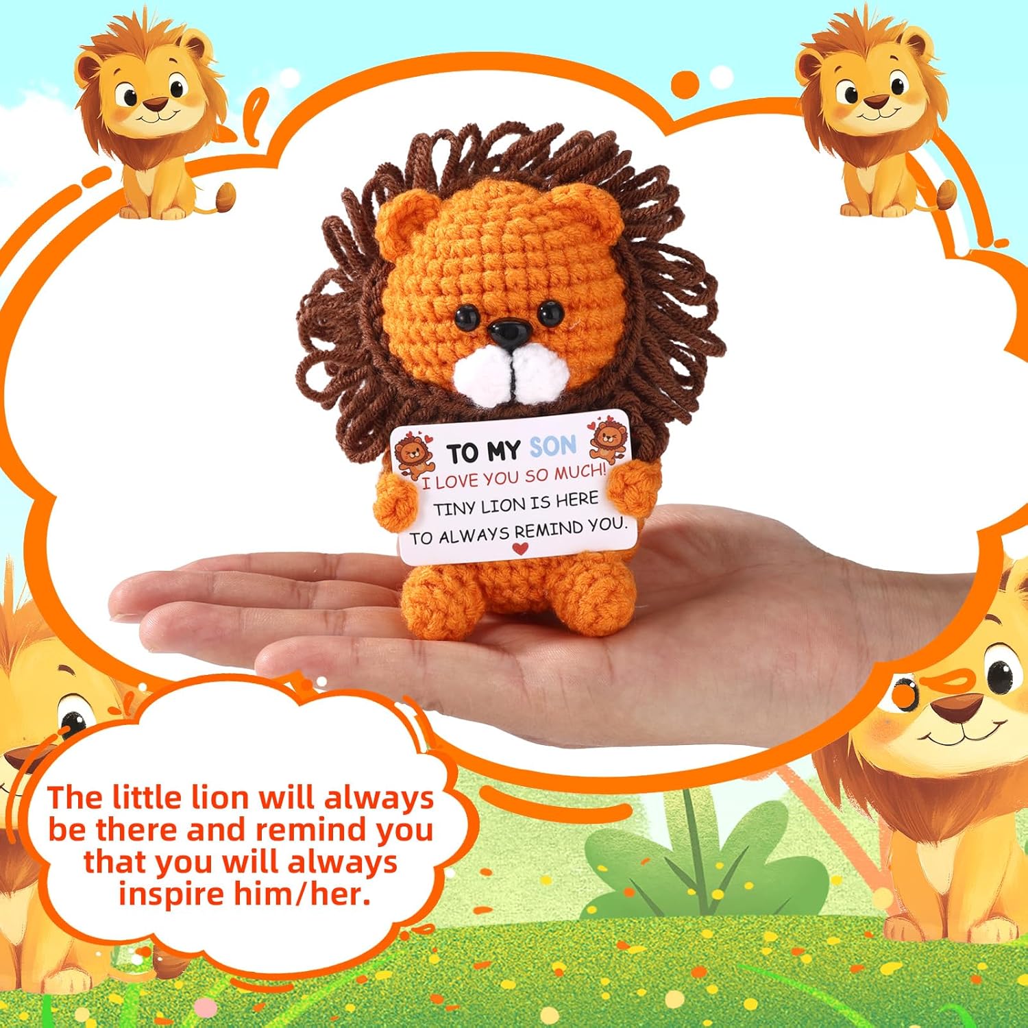 Regalo commovente per il figlio: riceverai 1 pezzo di adorabile leone all'uncinetto con un messaggio sincero. Un toccante ricordo del tuo amore, cura e incoraggiamento per tuo figlio o tuo genero. Materiale premium: realizzato in filato morbido di qualità, ogni piccolo leone è accuratamente lavorato a mano all'uncinetto con amore, conferendogli una personalità unica. Durevole, accogliente e sicuro da tenere in mano, perfetto come simpatico compagno per la casa, l'ufficio o il viaggio. Dimensioni portatili: il leone all'uncinetto misura circa 9x7x6 cm. Abbastanza piccolo da stare nel palmo di una mano o da sedersi su una scrivania, uno scaffale o un comodino, sempre lì come una presenza confortante. Simbolo di forza e coraggio: il leone rappresenta il coraggio, l'amore e la forza interiore. Regalalo a tuo figlio come promemoria quotidiano per rimanere fiducioso, forte e amato, soprattutto durante i momenti difficili o le tappe fondamentali della vita. Ampio utilizzo: il leone positivo è un regalo premuroso che esprime il tuo amore nel modo più dolce e significativo. Ideale per compleanni, lauree, Natale o qualsiasi momento speciale in cui vuoi ricordare a tuo figlio quanto significa per te.