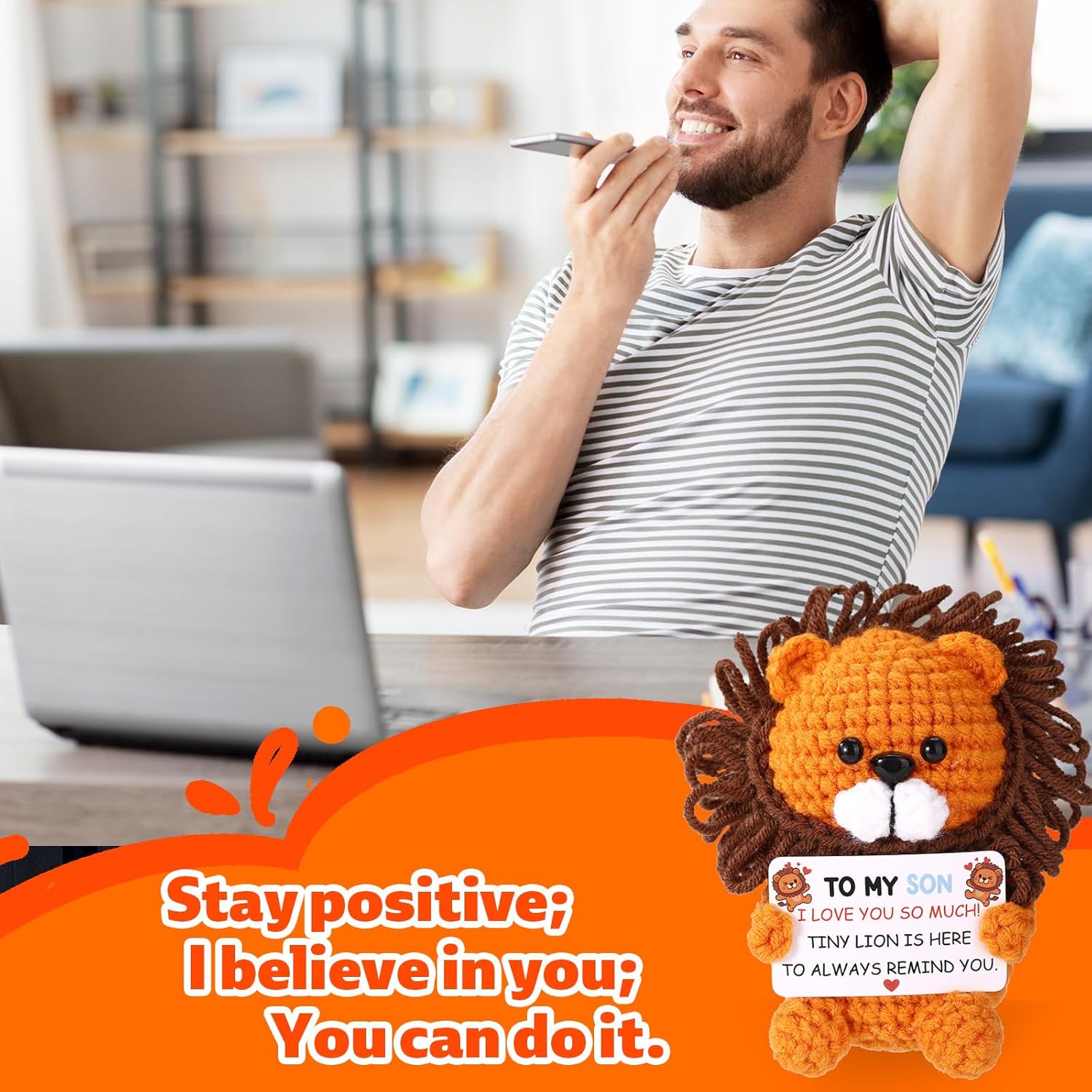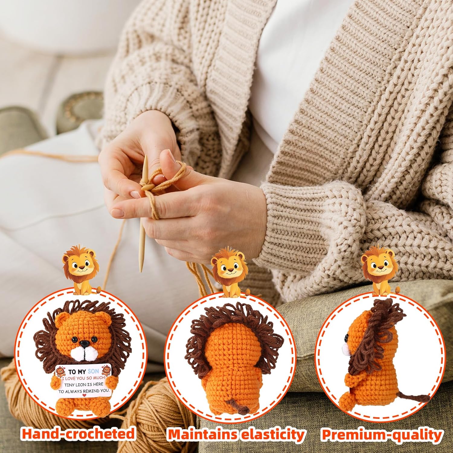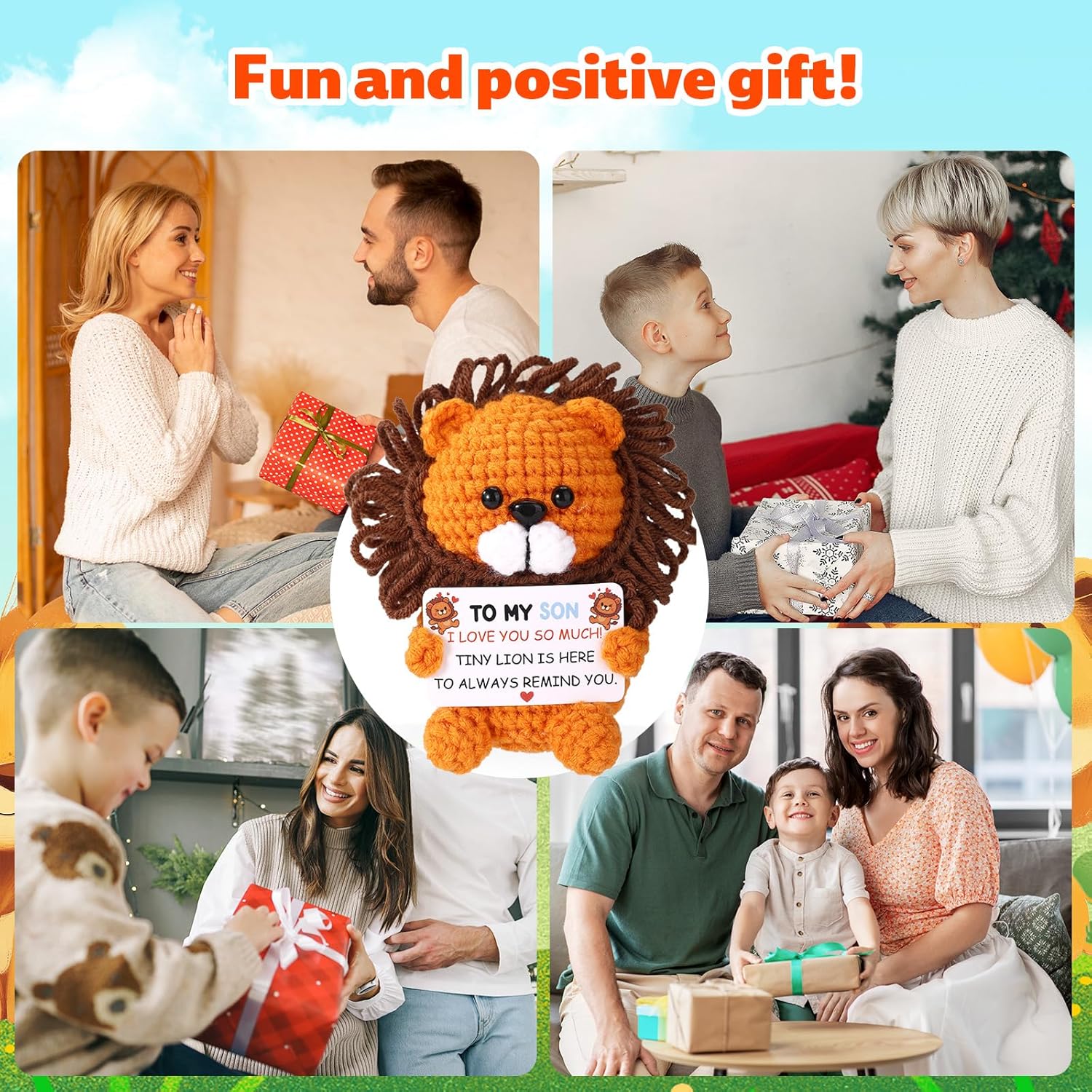 Regalo commovente per il figlio: riceverai 1 pezzo di adorabile leone all'uncinetto con un messaggio sincero. Un toccante ricordo del tuo amore, cura e incoraggiamento per tuo figlio o tuo genero. Materiale premium: realizzato in filato morbido di qualità, ogni piccolo leone è accuratamente lavorato a mano all'uncinetto con amore, conferendogli una personalità unica. Durevole, accogliente e sicuro da tenere in mano, perfetto come simpatico compagno per la casa, l'ufficio o il viaggio. Dimensioni portatili: il leone all'uncinetto misura circa 9x7x6 cm. Abbastanza piccolo da stare nel palmo di una mano o da sedersi su una scrivania, uno scaffale o un comodino, sempre lì come una presenza confortante. Simbolo di forza e coraggio: il leone rappresenta il coraggio, l'amore e la forza interiore. Regalalo a tuo figlio come promemoria quotidiano per rimanere fiducioso, forte e amato, soprattutto durante i momenti difficili o le tappe fondamentali della vita. Ampio utilizzo: il leone positivo è un regalo premuroso che esprime il tuo amore nel modo più dolce e significativo. Ideale per compleanni, lauree, Natale o qualsiasi momento speciale in cui vuoi ricordare a tuo figlio quanto significa per te.