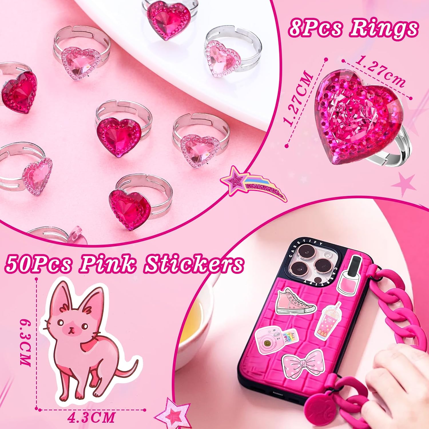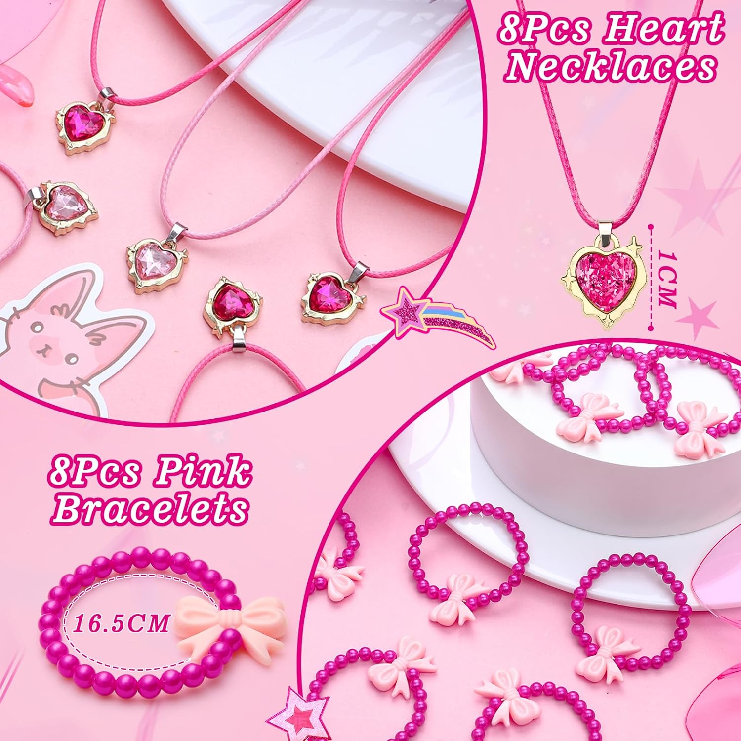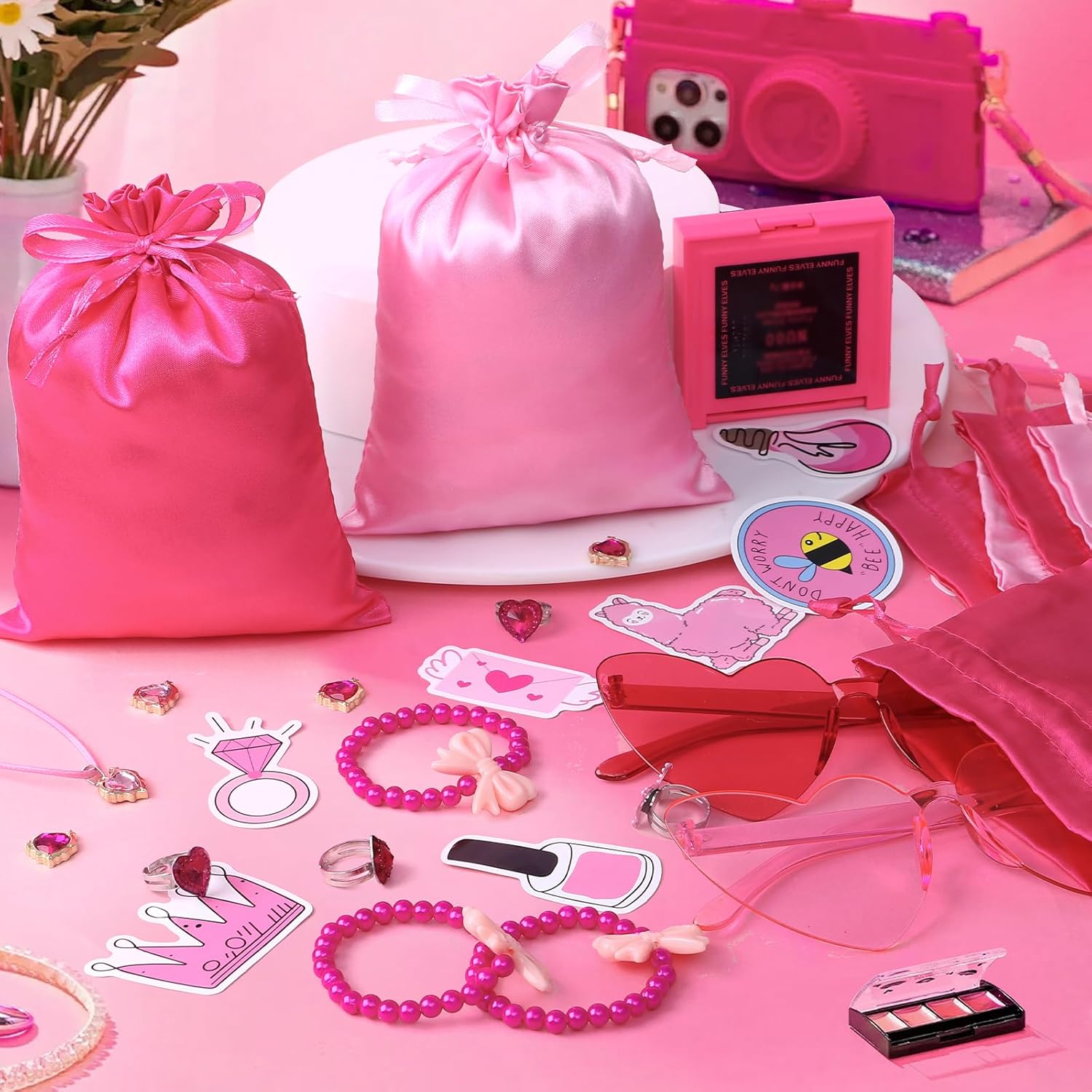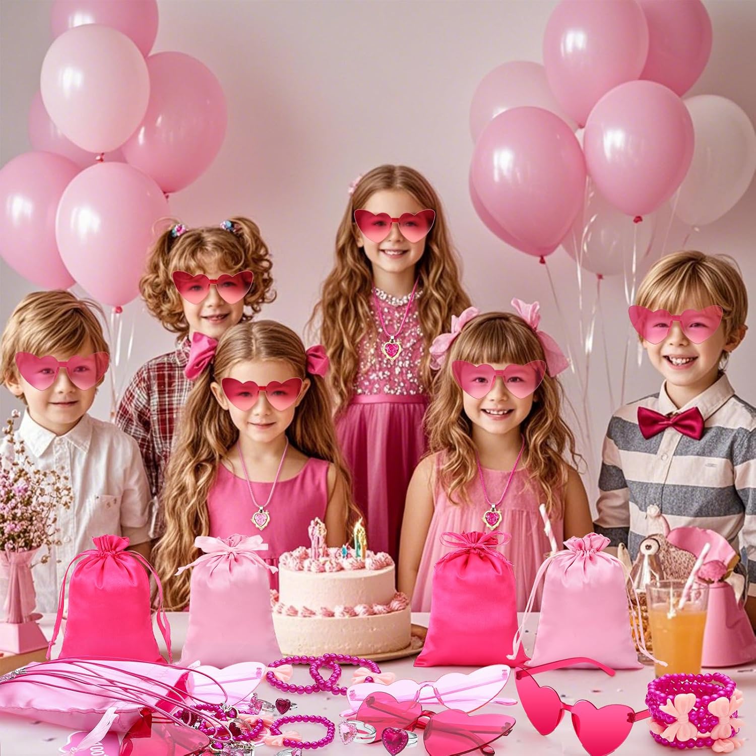 Sacchetti regalo rosa per le feste - I nostri regalini per le feste per bambini includono vari piccoli regali per bambini: 8 bicchieri rosa per le feste, 8 sacchetti regalo, 8 collane, 8 braccialetti, 8 anelli e 50 adesivi. Tutti i piccoli giocattoli sono squisiti e pratici da condividere con bambini e amici. Regali per feste per ragazze - I bicchieri da festa hanno una forma a cuore e sono disponibili in 2 colori. I sacchetti regalo in seta offrono spazio non solo per piccoli regali, ma anche per piccoli snack. Una varietà di adesivi consente alle ragazze di decorare i loro oggetti. Sicuro e di alta qualità: le nostre collane, bracciali e anelli sono realizzati con materiali di alta qualità con bordi lisci che non danneggeranno i bambini. E il look è alla moda e fa brillare ogni ragazza. Ampia applicazione: i souvenir rosa per bambini possono essere utilizzati come regalini per compleanni per bambini 3 4 5 6 7 8 9 10 11 12 anni, bomboniere per compleanno per bambini, piccoli oggetti per bambini, souvenir per bambini, baby shower e regali per compleanni, Natale, Halloween. Le bomboniere rosa sono la scelta migliore per te. Ottimo regalo: le nostre bomboniere sono regali ideali per le bambine. Le nostre bomboniere rosa per feste di compleanno combinano diversi tipi di piccoli regali, possono aggiungere divertimento alla tua festa, portare più gioia ai bambini e contribuire a creare ricordi indimenticabili con la famiglia e gli amici. Fantastiche borse da festa per i compleanni dei bambini 5 6 7 8 anni!