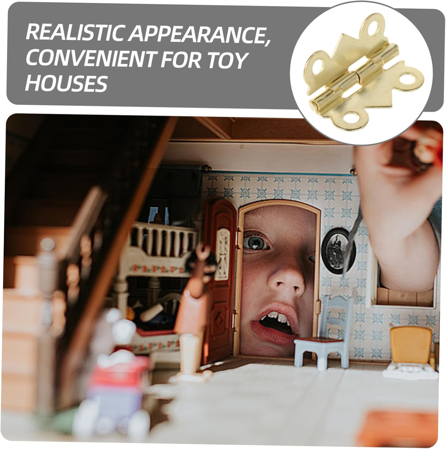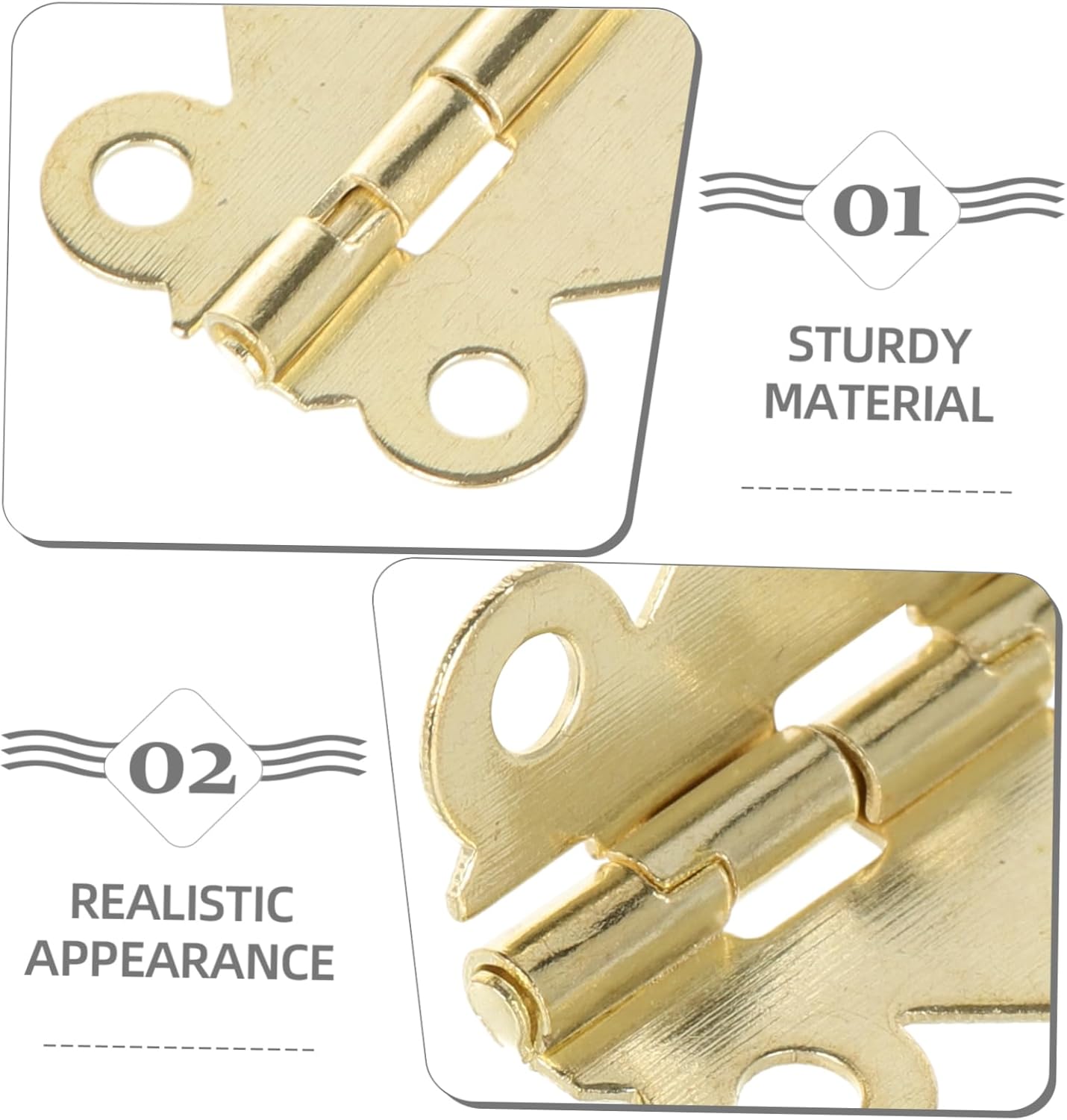 Cerniera fai da te per mini mobili-- superficie liscia: la sua superficie liscia assicura che questa sensazione di contatto con la mano della mini cerniera sia comoda, adatta per giocare, cerniera della casa delle bambole Cerniera per bambola-- mini cerniera: modello di micro cerniera in miniatura della casa delle bambole. può essere utilizzato come decorazione con micro cerniera, pratica e versatile, cerniera in miniatura Mini cerniere per l'artigianato-- decorazione della casa delle bambole: l'accessorio decorativo appositamente progettato per la casa delle bambole può rendere la tua casa delle bambole più realistica, mini ornamento della casa Cerniere minuscole-- quantità sufficiente: design compatto e leggero per un facile trasporto, una quantità sufficiente può soddisfare le vostre richieste di quantità, accessori per la casa delle bambole Mini cerniera per gioco di finzione: decorativa: design elegante e unico, una aggiunta a qualsiasi casa delle bambole, questa mini cerniera è decorativa, cerniere in miniatura per l'artigianato