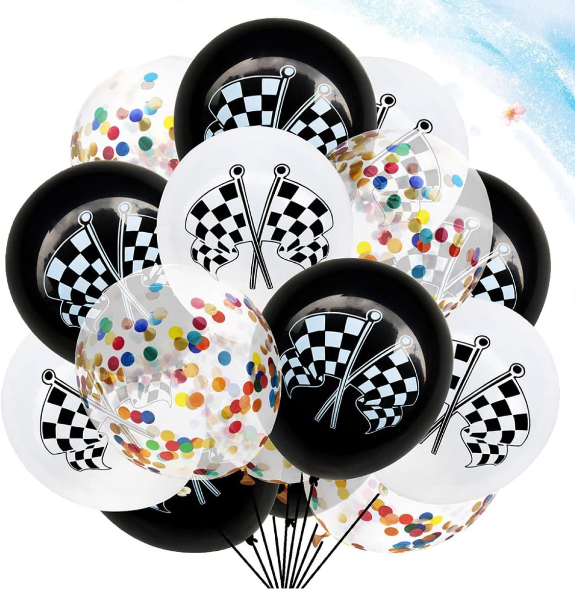 Palloncini da corsa--prodotti con materiale per uso ripetuto,palloncini con bandiera a scacchi Palloncini coriandoli: puoi decorarli in casa, in giardino, in competizioni sportive, feste e così via, palloncini con bandiera a scacchi Palloncini in lattice da corsa: il design della bandiera da corsa a scacchi li rende forniture e decorazioni per feste a tema auto da corsa per aggiungere un'atmosfera , palloncini con bandiera a scacchi Palloncini con bandiera a scacchi: da posizionare su un tavolo da dessert o su un tavolo da dessert per aggiungere un tocco unico al tuo evento speciale!, palloncini per feste di corse Palloncini per feste di corse: questi palloncini in lattice e coriandoli sono decorazioni versatili per la maggior delle feste, palloncini con bandiera a scacchi