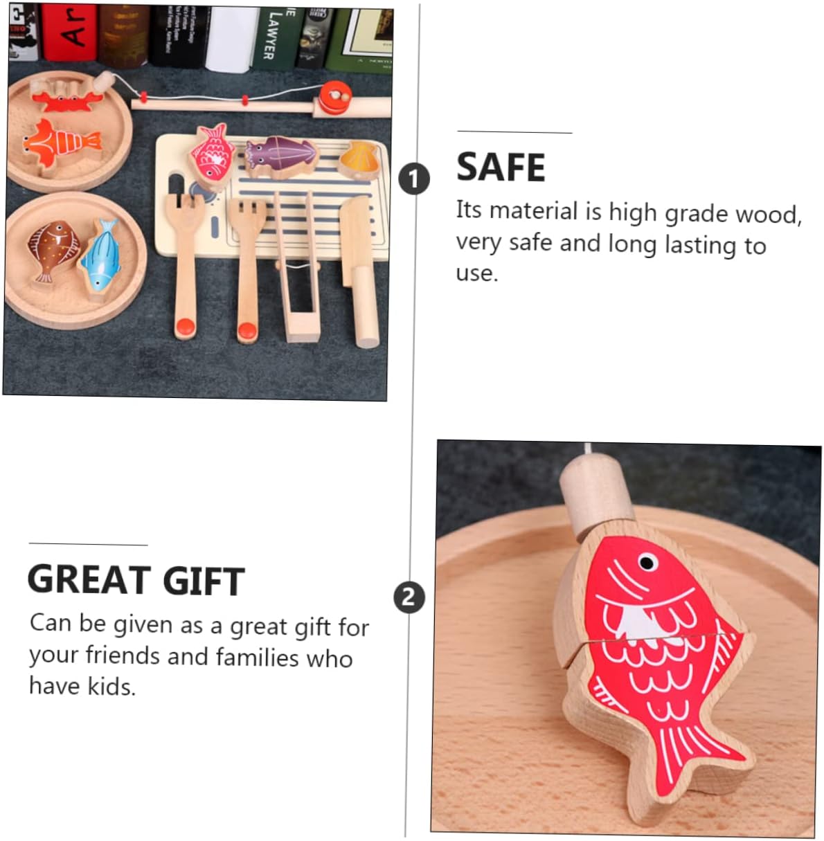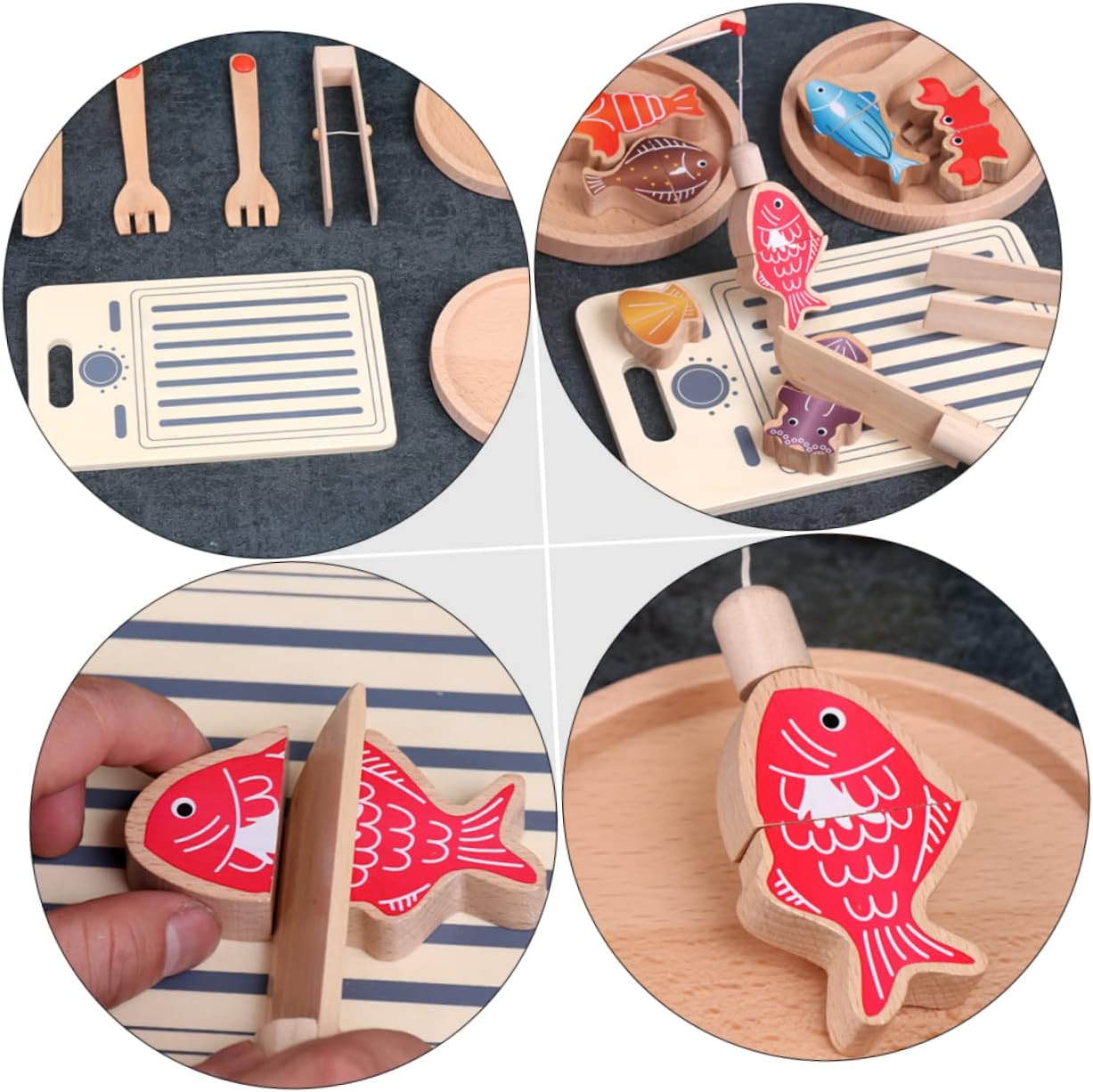 Casetta da gioco da cucina: contiene una varietà di cibo e utensili da cucina, mentre gioca, può distinguere inconsapevolmente una varietà di cibo, casetta da gioco Giocattoli da pesca: aumenta il rapporto genitori-figli e l'amicizia con questo set di tagli di simulazione, taglio Divertente pesce da tagliare: questo set può aiutare a sviluppare capacità pratiche e capacità immaginative, divertente e creativo, casa delle bambole Tagliare il pesce: può aiutare ad allenare le capacità di coordinazione occhio-mano, sviluppare creatività e immaginazione, ecc., taglio divertente Taglio del legno: l'adorabile kit di tagli da cucina simulati può attirare l'attenzione, tagliando