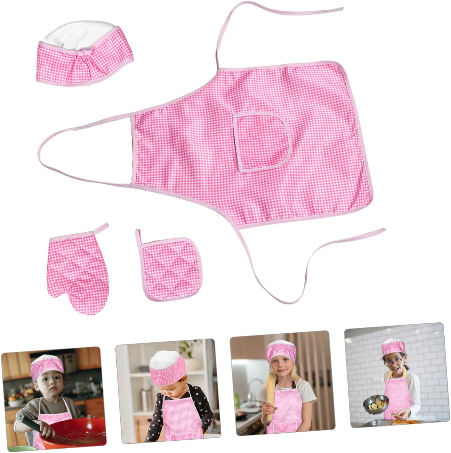 Abbigliamento comodo: il tessuto morbido garantisce che possa indossare il set comodamente per periodi prolungati, grembiule da chef, grembiule per cucinare Alla moda e carino: il design del grembiule a scacchi rende elegante e adorabile durante il gioco finto, scatenando il loro interesse per cucinare, grembiule da chef per i kit da cottura Regolabile: il design regolabile garantisce comodamente il grembiule di età diverse, set di cottura, grembiuli per cucinare Stimola la creatività: incoraggia a usare la loro immaginazione e creatività in cucina, set di cucina, set da cuocere Afferra l'interesse per la cucina: questo set è progettato per suscitare interesse per cucinare e cottura, grembiule per le forniture da cucina