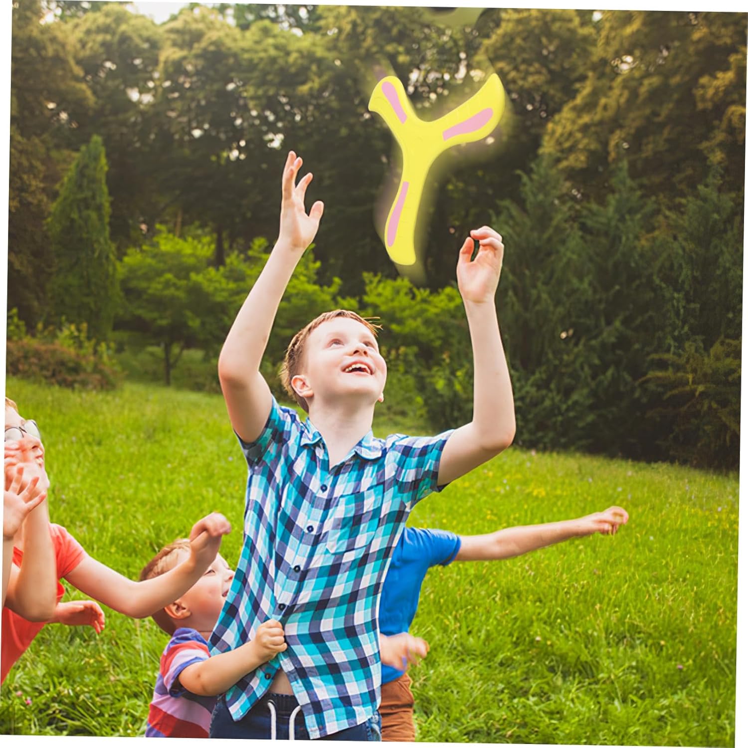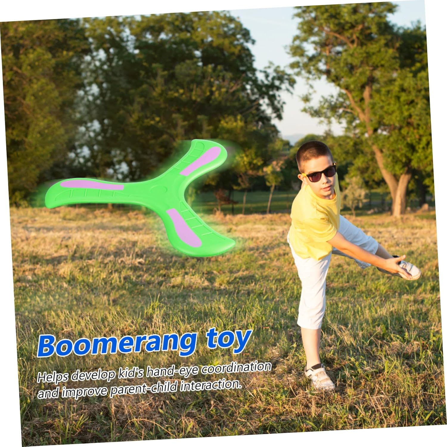 Giocattolo per bambini: quando lo lanci, può tornare indietro con una presa rapida. Puoi seguire alcune semplici tecniche di lancio per un'azione di ritorno più semplice, come ad esempio: b. Dischi volanti, giocattoli volanti da esterno: il ritorno è una meravigliosa idea regalo che delizierà sia i genitori che i bambini. Esterno per boomerang: è realizzato in materiale EVA sicuro senza sostanze nocive, che garantisce un utilizzo affidabile, giocattoli da esterno per bambini Boomking: con il suo design dai colori vivaci, ha un aspetto molto visivo che può essere attraente per i giocattoli dei tuoi bambini: realizzato in materiale EVA con bordi lisci e senza sostanze nocive. Ciò ti consente di utilizzarlo in sicurezza come giocattolo sportivo all'aria aperta