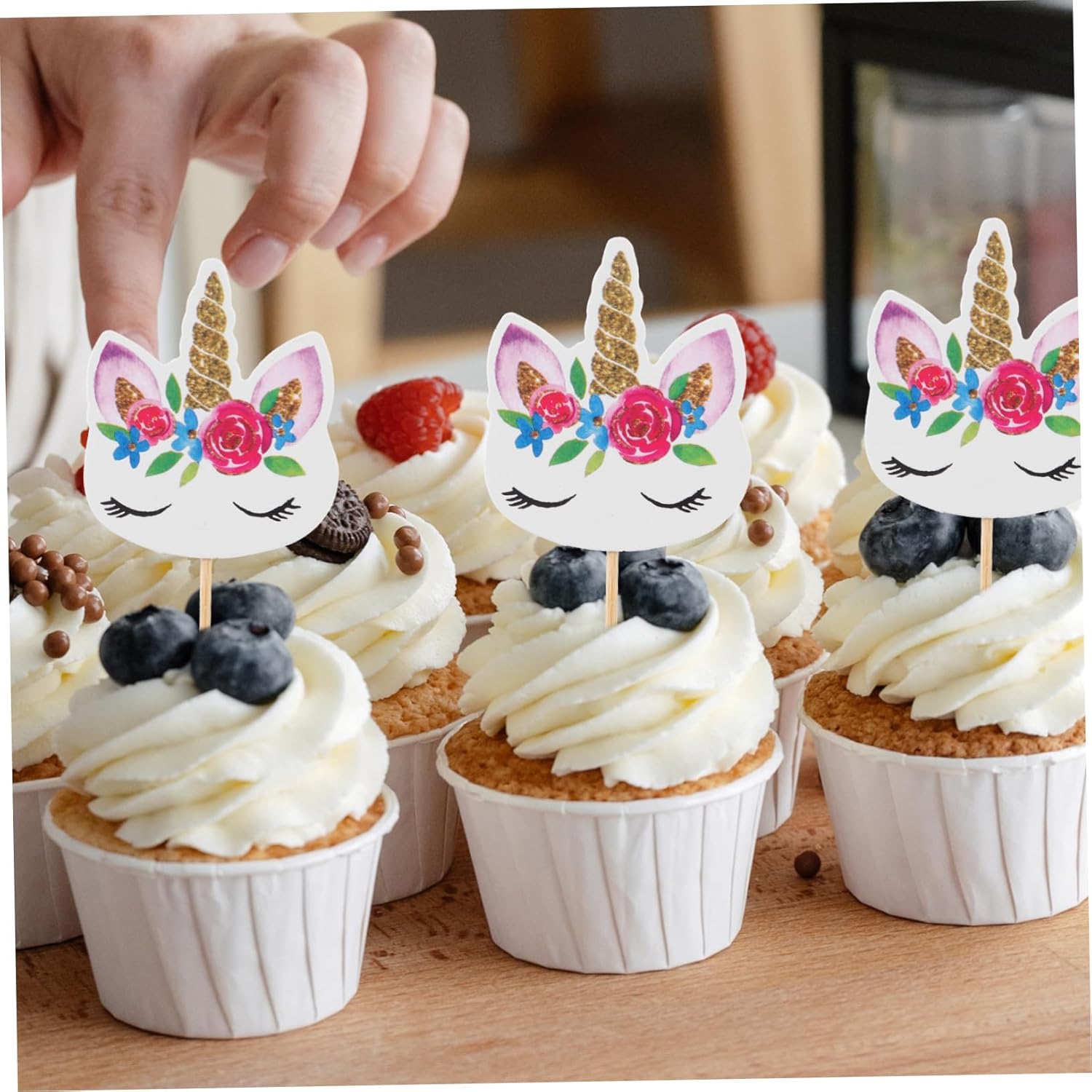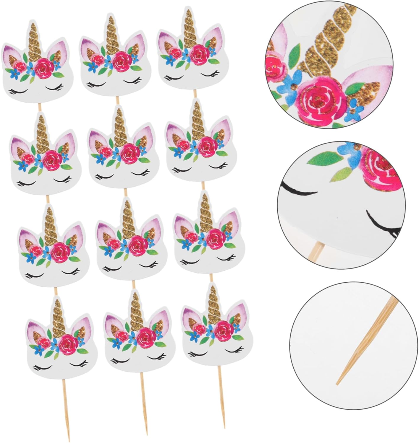 Etichette per cupcake con etichette per alimenti: leggere, di lunghezza adeguata, facili da inserire nella torta o da estrarre, offrendoti maggiore praticità, articoli per feste a tema unicorno Decorazione per torta a forma di cartone animato: creata per essere un'aggiunta speciale alle decorazioni per le feste, ottima anche come accessorio fotografico, decorazione per cupcake di compleanno Decorazioni per cupcake per feste di compleanno: presentano un adorabile motivo floreale e un bel colore, queste decorazioni per cupcake sono più attraenti, decorazioni per cupcake mubarak Decorazioni per torte fai da te: realizzate in materiale cartaceo, queste decorazioni per torte sono sicure, pratiche e decorative da utilizzare, decorazioni per torte per le feste Decorazione per torta a forma di unicorno: può decorare la tua festa e lasciare momenti memorabili per la tua famiglia o i tuoi amici, decorazione per cupcake di compleanno