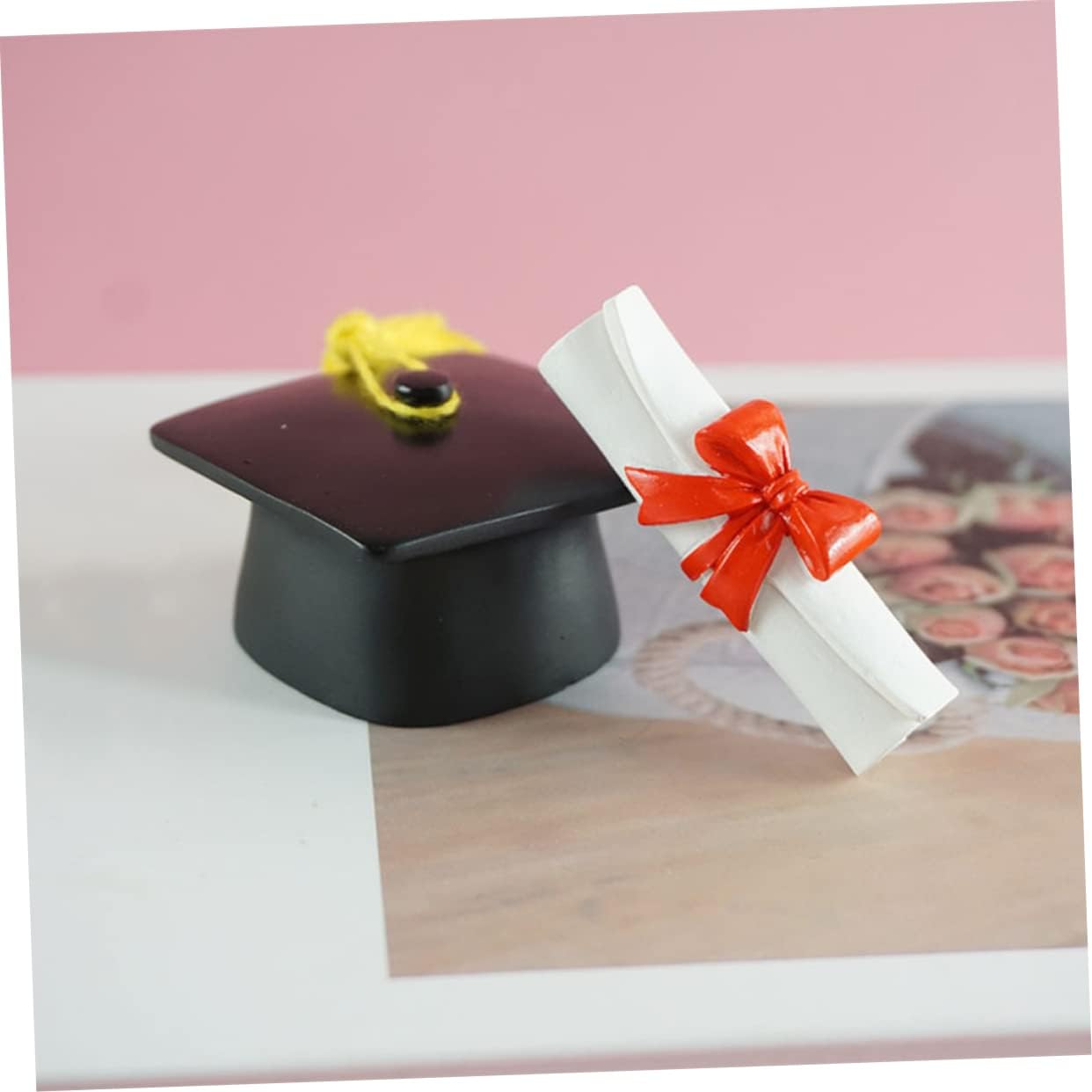 Decorazione in resina per la festa di laurea: ben realizzata e realizzata, liscia senza sbavature, sicura da usare, decorazione a forma di pergamena per certificato Mini pergamena per certificato di laurea: con l'aspetto squisito e vivido, la squisita decorazione della figurina è creativa e innovativa, ornamento per interni Accessorio fotografico: realizzato in materiale di resina di alta qualità, leggero e di , statuetta di laureato Decorazione per l'ultimo anno di scuola: realizzata in materiali in resina buoni e leggeri per una maggiore durata, decorazioni artigianali in resina Decorazione per l'ultimo anno: il suo aspetto piccolo la rende attraente per le persone ed è adatta per decorazioni di scena o regali, decorazione del paesaggio