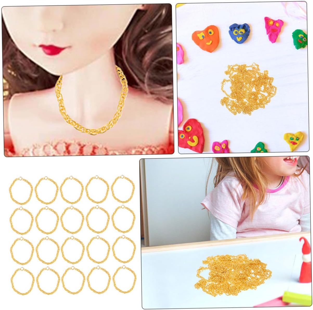 Mini catena: queste collane per bambole mostreranno la tenerezza e la moda delle tue bambole, la collana per bambole è accattivante, collana a catena per bambole Gioielli per bambole: possono attirare facilmente l'attenzione di tutti, mostrare facilmente il fascino unico del tuo giocattolo durante una festa o in mezzo alla , fingono gioielli per bambole per bambole Collana giocattolo per bambole: questa graziosa ed elegante collana per bambole sarà il meraviglioso per il tuo piccolo giocattolo o per altre bambole, catena per bambole Decorazioni per collane di bambole: dimensioni compatte, queste collane per bambole sono comode al tatto, leggere da trasportare, facili da indossare, di gioielli per bambole Mini collana per bambole: puoi facilmente usare queste collane per bambole per abbinarle alla maggior dei vestiti delle tue bambole, come vestiti, catene per bambole