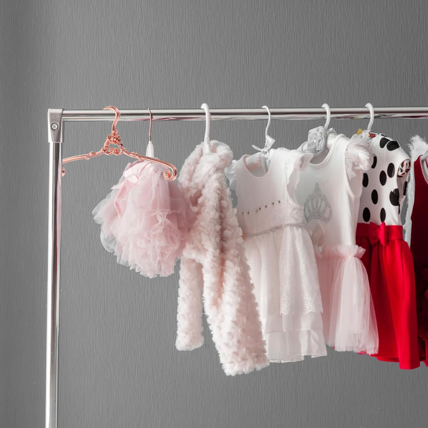 i tuoi vestiti per le bambole possono essere appesi ordinatamente nell'armadio, guardaroba per bambole ben organizzato, le mini grucce sono utili ed eccellenti. la superficie liscia, senza sbavature, non danneggerà mai i vestiti delle tue bambole, sicura e pratica. con queste grucce per vestiti per bambole puoi esporre tutti i vestiti delle bambole in modo facile e comodo. realizzato in materiale di ferro, struttura durevole, semplice e robusta per tenere stabilmente i vestiti delle bambole. mini formato, semplice da usare, può essere utilizzato per mini casa, vestiti per appendere nell'armadio delle bambole, semplice e delicato.