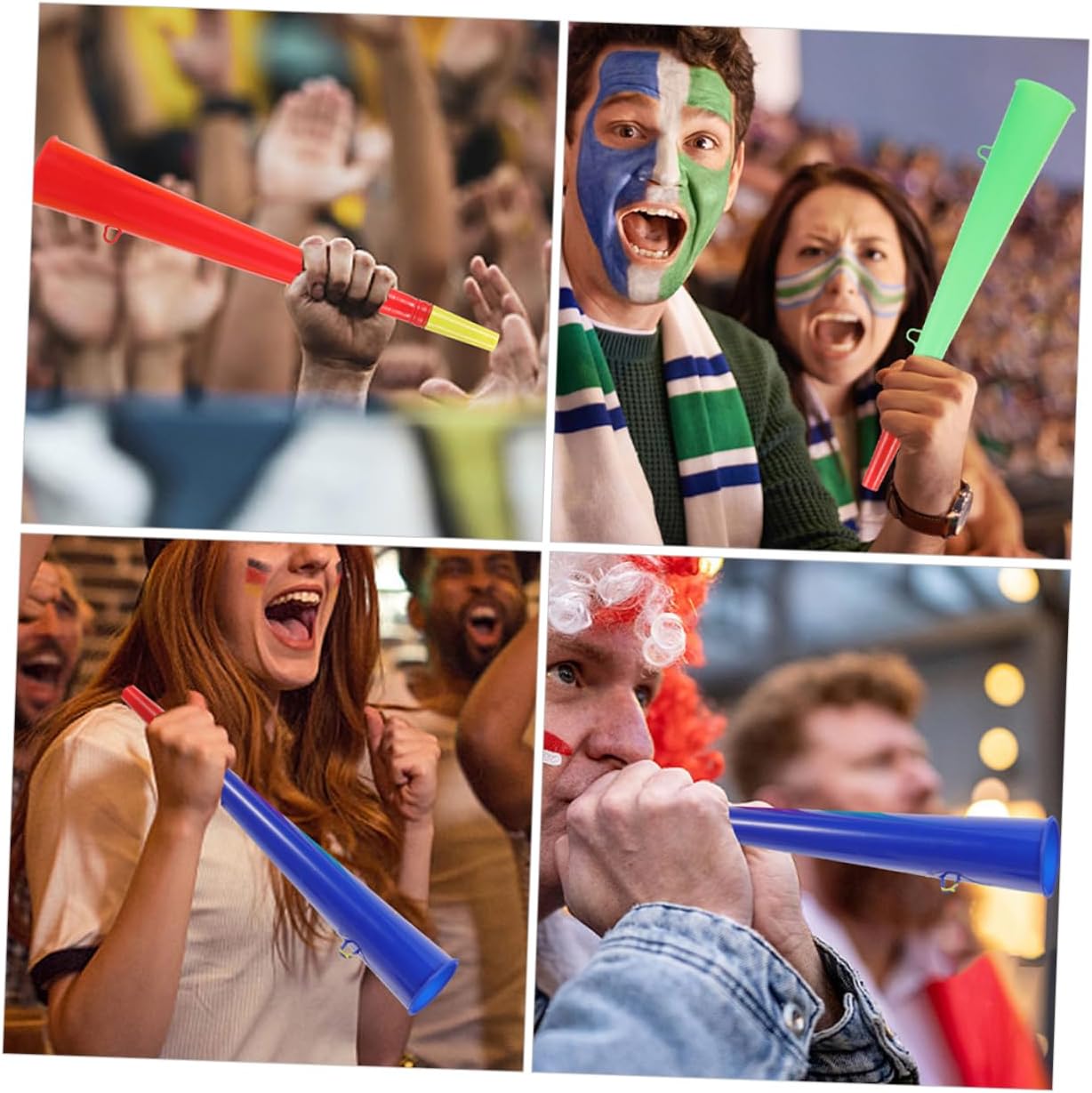 Tromba per sportivi: realizzata in materiale plastico, garantisce un uso prolungato, semplice da usare, non necessita di batterie, comoda, tromba giocattolo Tromba giocattolo divertente: questa tromba da gioco è un accessorio indispensabile per feste, concerti, partite di calcio e altro ancora, corno da gioco Bomboniere per feste di calcio: realizzate in materiale plastico, questa tromba da gioco è un accessorio sicuro per il tuo gioco quotidiano di festa, giocattolo di corno da calcio Tromba per eventi sportivi: ideale per aggiungere un po' di allegria a concerti o altre attività all'aperto, molto comoda da usare, accessorio per feste con tromba Giocattoli per il tifo: preparati a tifare per la tua squadra preferita con questi corni di plastica, leggeri e facili da trasportare, oggetti di scena per tromba