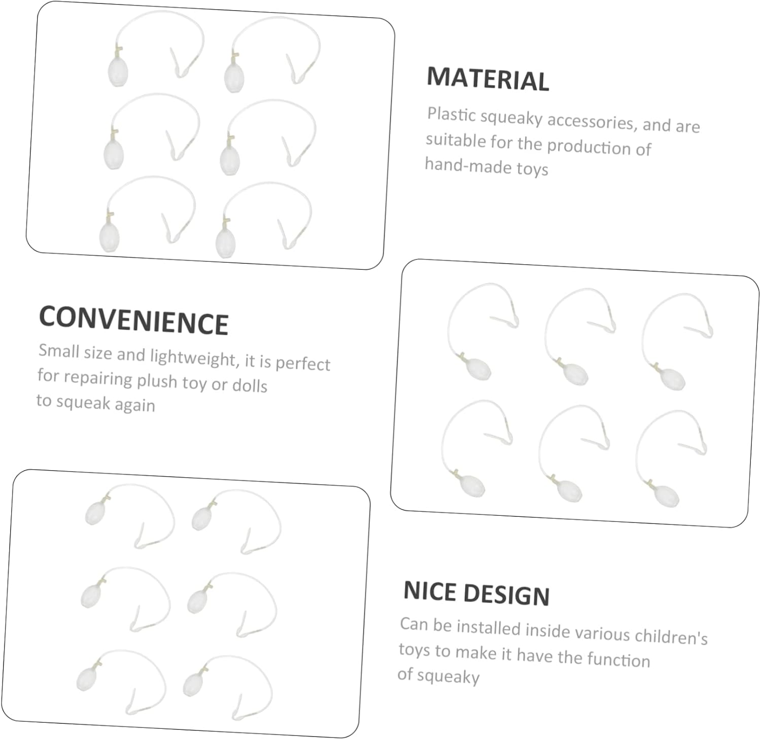 Sonaglio per : piccolo e di alta qualità, questo articolo può soddisfare le tue esigenze di giocattoli sonori fai da te, piccolo strumento squittente Accessori per la riparazione dei sonaglio: sono piccoli e adattano perfettamente alla maggior dei giocattoli di peluche, facili da usare e riporre, squeaker per giocattoli per cani Squeaker: possono aiutare ad allenare la capacità di reazione del o dell'animale domestico, comodi e pratici, accessori giocattolo per Squeaker per cani: piccoli e leggeri, il che significa che possono adattarsi perfettamente ad alcuni giocattoli di peluche o squittenti, squeaker di plastica Articoli essenziali per il soggiorno: questo articolo è realizzato con per un uso duraturo, strumento squittente per le orecchie di coniglio