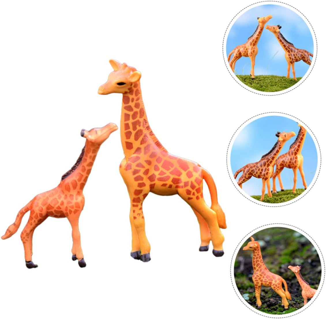 Statue da giardino all'aperto: la statua in resina della giraffa può anche essere un per i tuoi bambini piccoli che amano le pecore e che amano i decori con animali, mini statua da giardino della giraffa Decorazione mini giraffa: questa decorazione in miniatura in resina è perfetta anche per qualsiasi scrivania, giardino, casa delle bambole, decorazione di torte, ecc., figurine di giraffa in resina Mini giraffa-- queste figure in miniatura di giraffa artigianale in resina sono adorabili e delicate, con buoni effetti decorativi, adatte per decorare mini giardino, piante in vaso e altri luoghi, figurine per esterni Statue di giraffa da giardino: realizzate in materiale di resina, l'arredamento in miniatura della giraffa è resistente e non facile da rompere o deformare, statuina di giraffa in resina Decorazioni per piccoli animali-- con pregevole fattura, che sembrano molto speciali e uniche, questa è una decorazione per la scena del tuo prato, decorazione con statuetta di giraffa