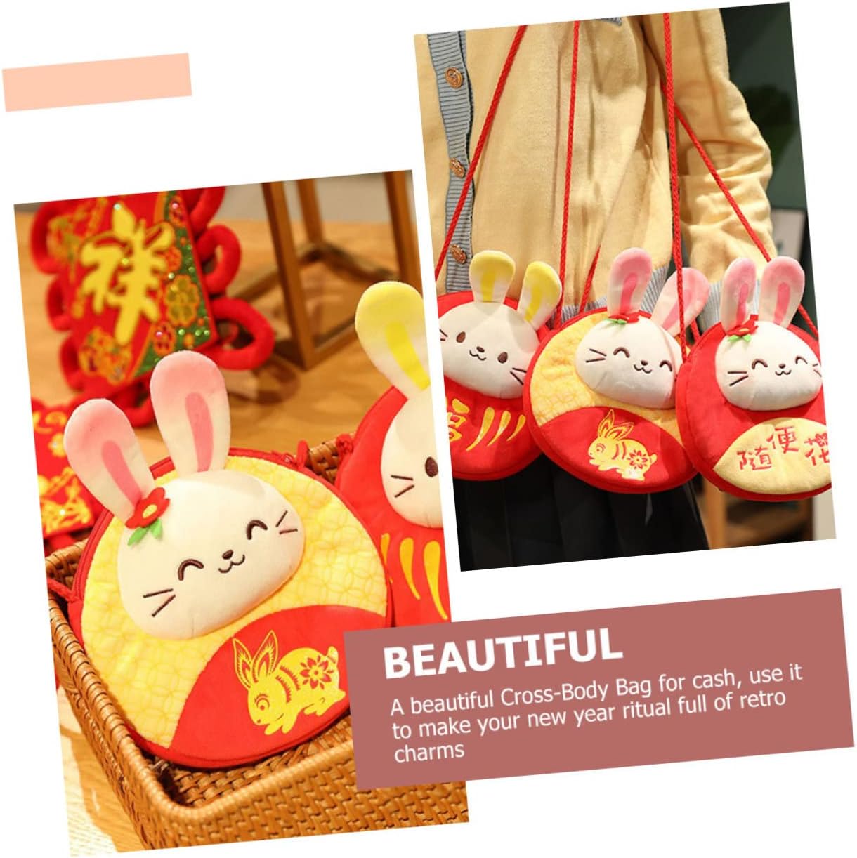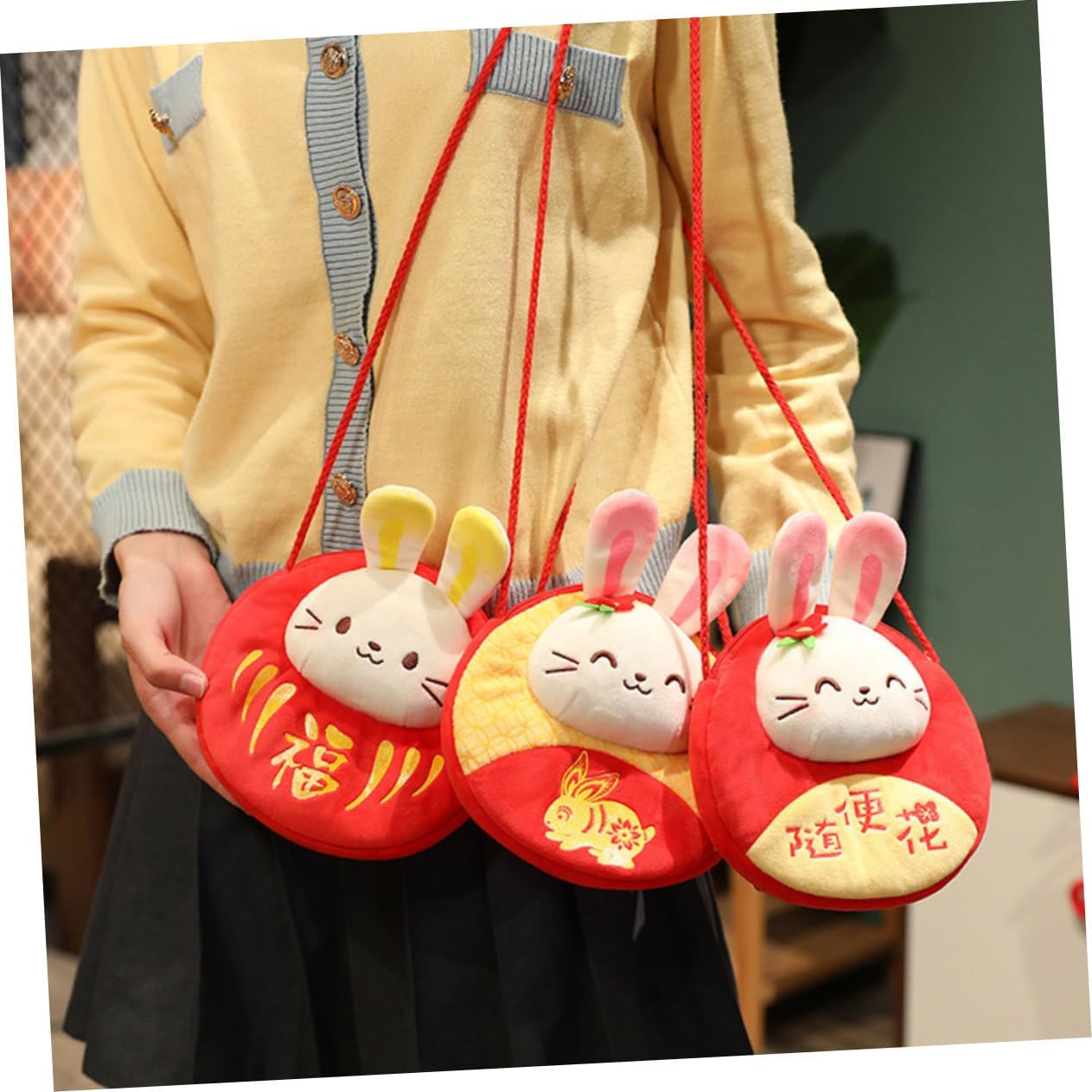 Borsa a tracolla con coniglio: metti dei contanti o delle nella borsa rossa come capodanno, compleanno, shower, matrimonio, ecc., borsa per riporre le chiavi Borsa a tracolla con coniglio: stile versatile, la borsa a tracolla può essere abbinata ai tuoi vestiti a piacimento in base alle tue preferenze, lussuoso pacchetto di soldi per il anno Decorazioni per feste di capodanno: la piccola borsa per conigli è facile da trasportare, adatta per lo shopping, le passeggiate, i viaggi, il lavoro, la scuola, la borsa a tracolla singola Borsa in peluche per capodanno: ideale per riporre gli oggetti di uso quotidiano, tra cui telefono, , chiavi, carta d'identità, biglietti, crema solare e busta rossa a forma di coniglio Portamonete con testa di coniglio: il sacchetto di soldi decorato con testa di coniglio dei cartoni animati porterà più gioie a chiunque ami, buste per soldi dell'anno di coniglio