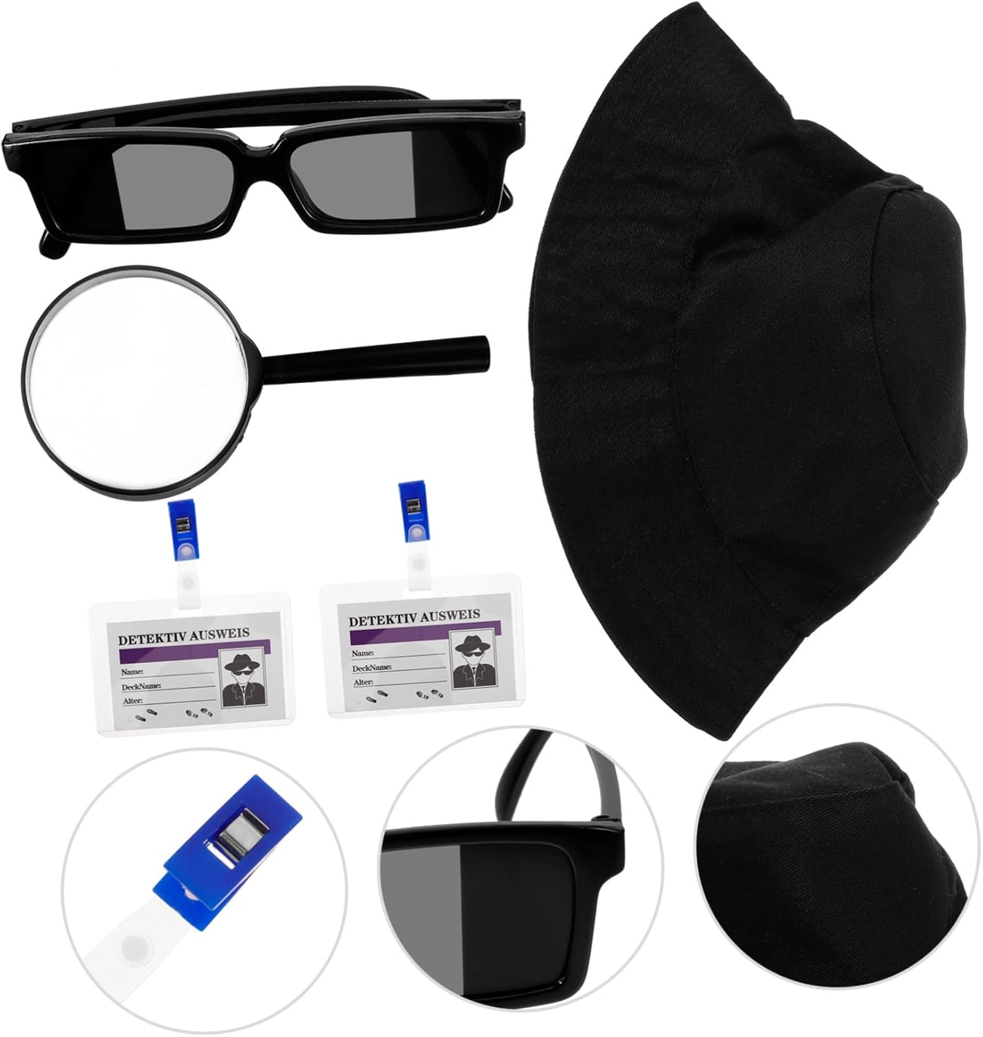 Forniture per travestimenti da detective: ampi utilizzi, adatte per spettacoli teatrali, feste a tema, feste in maschera, carnevali, cosplay, halloween, ecc., accessori per cosplay Kit costume da detective: accessori adatti per costumi da detective cosplay per donne o uomini, soddisfano facilmente le tue esigenze, kit di strumenti da detective Gioco di ruolo da detective per halloween: questo costume da detective ti consente di entrare rapidamente ed efficacemente nel mondo del gioco di ruolo, accessorio da detective Gioco di finzione da detective: questi oggetti di scena da detective offrono un'attività divertente con gli amici, adatti per feste, cosplay, spettacoli e altro ancora, kit cappello da detective Kit occhiali da detective: incoraggia ad essere osservatori e analitici, aiutandoli a pensare in modo critico e logico, costume da detective per cosplay
