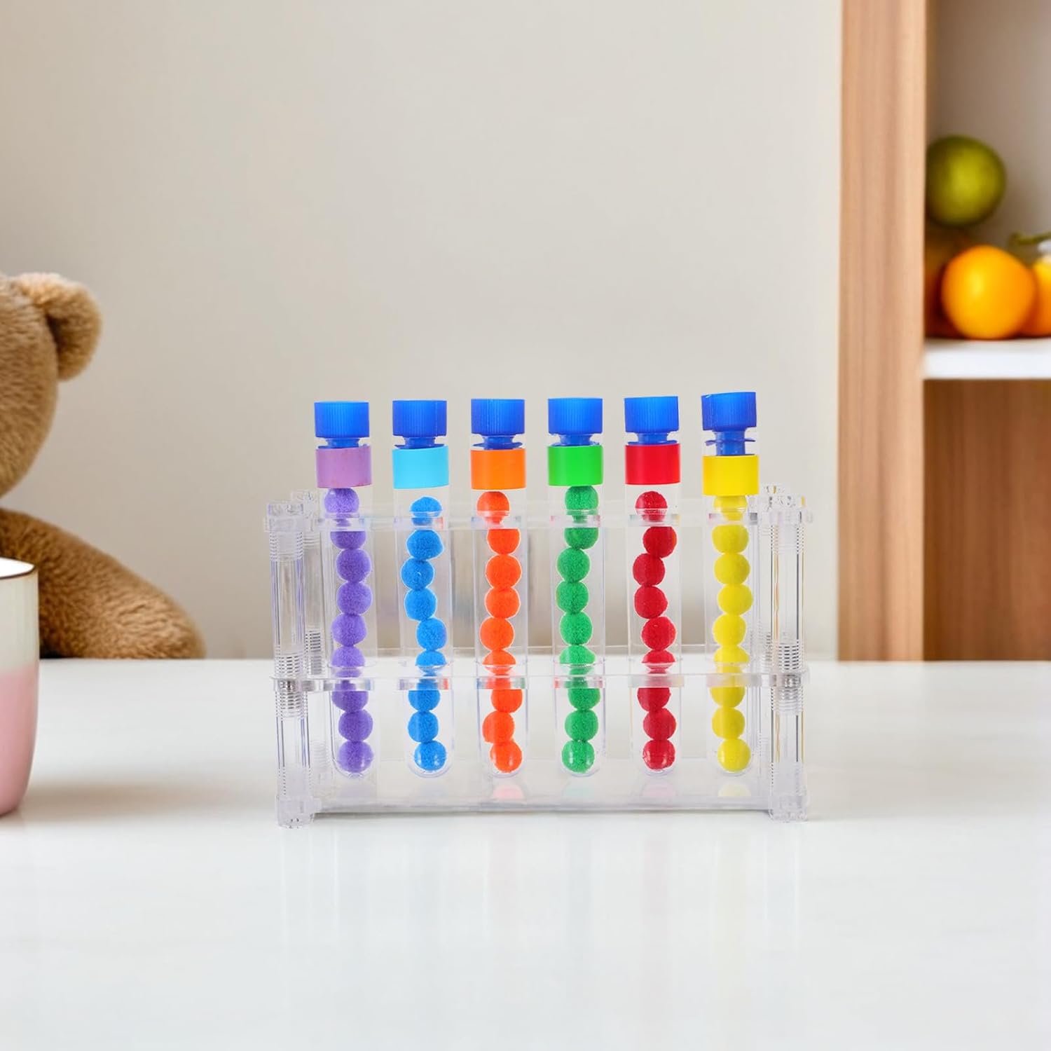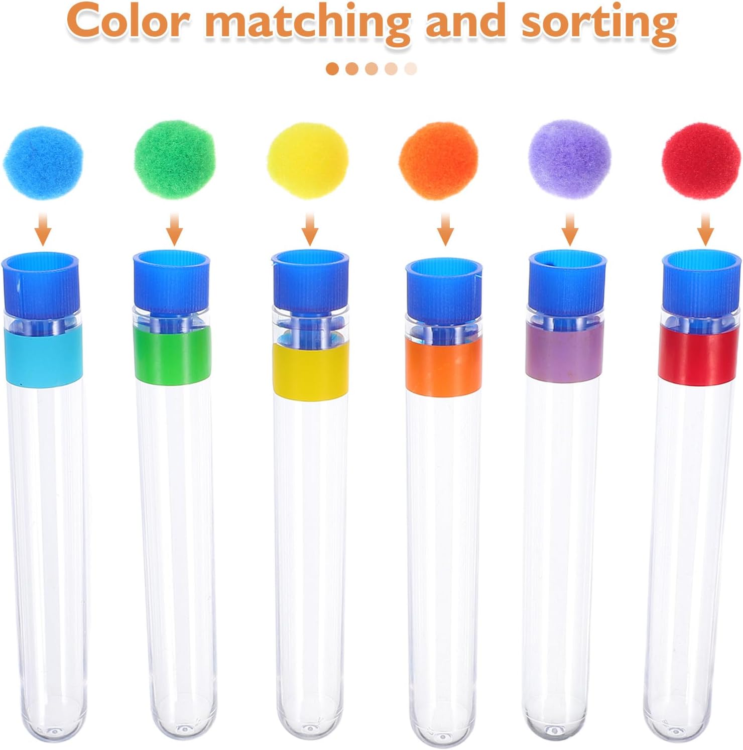Con i nostri giocattoli Montessori, contare e ordinare per colore diventa un piacere! I bambini devono semplicemente afferrare il cucchiaio, poi afferrare e ordinare le palline nei tubi in base al colore. È un ottimo modo per imparare la matematica, la consapevolezza dei colori, l'abbinamento, il conteggio e la sequenza, sviluppare la motricità fine e molto altro ancora. I bambini imparano ad abbinare i colori ogni volta che mescolano e abbinano i pompon. I colori vivaci di questo giocattolo didattico per bambini catturano facilmente l'attenzione dei bambini e stimolano lo sviluppo delle loro capacità di percezione visiva. Aiuta anche i bambini a sviluppare la motricità fine e la coordinazione occhio-mano, oltre a sviluppare competenze matematiche essenziali per i primi anni di vita. Per tutti i tipi di attività di apprendimento prescolare, questo set è un'aggiunta naturale ai giocattoli Montessori per bambini piccoli nelle aule, agli ausili per l'istruzione domestica e agli strumenti per l'asilo nido Questo giocattolo non è solo educativo, ma promuove anche l'interazione sociale, per bambini in età prescolare di 3, 4, 5 e 6 anni. Perfetto come regalo per compleanni, Natale, ritorno a scuola, Ringraziamento, Pasqua e tutte le festività. La confezione include: il set di smistamento è disponibile in una confezione conveniente con 54 perline, 6 tubi, 1 cucchiaio, 1 porta-tubi, una varietà di divertenti modalità di gioco incoraggiano il tuo bambino a e gli permettono di divertirsi mentre impara