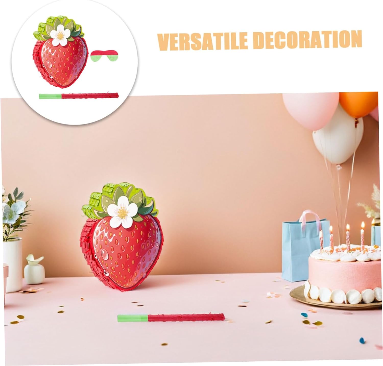 Decorazione versatile per le feste: come decorazione per buon compleanno alla fragola o supporto fotografico alla fragola, migliora l'aspetto delle decorazioni per feste a tema fragola, giochi per feste Cinco de Mayo e giochi per feste a tema cibo Facile da appendere e riempire: dispone di un robusto anello per appenderlo e un comodo foro di riempimento per riempire con coriandoli, decorazioni per feste con cibo o regali per feste, piñata alla fragola, divertente piñata a fetta di fragola, decorazione a tema fragola Decorazione versatile: usa questa piñata alla fragola come elemento centrale per accessori fotografici per feste alla fragola o appendila a soffitti, finestre o pareti per decorazioni di compleanno a tema fragola, oggetti fotografici per feste alla fragola o giochi di cibo Cinco de Mayo Versatilità decorativa: usalo come decorazione per regali di festa alla fragola o appendilo come parte di una decorazione a tema fragola per aggiungere fascino alle feste a tema fragola, piñata di cibo per feste di compleanno e decorazioni di compleanno alla fragola Facile da appendere e riempire: dispone di un robusto anello per appenderlo e un foro di riempimento con un adesivo apribile, ideale per riempire con coriandoli di carta colorata, caramelle o mini decorazioni per feste a tema fragola, piñata per feste a tema cibo, regali per feste con piñata alla fragola