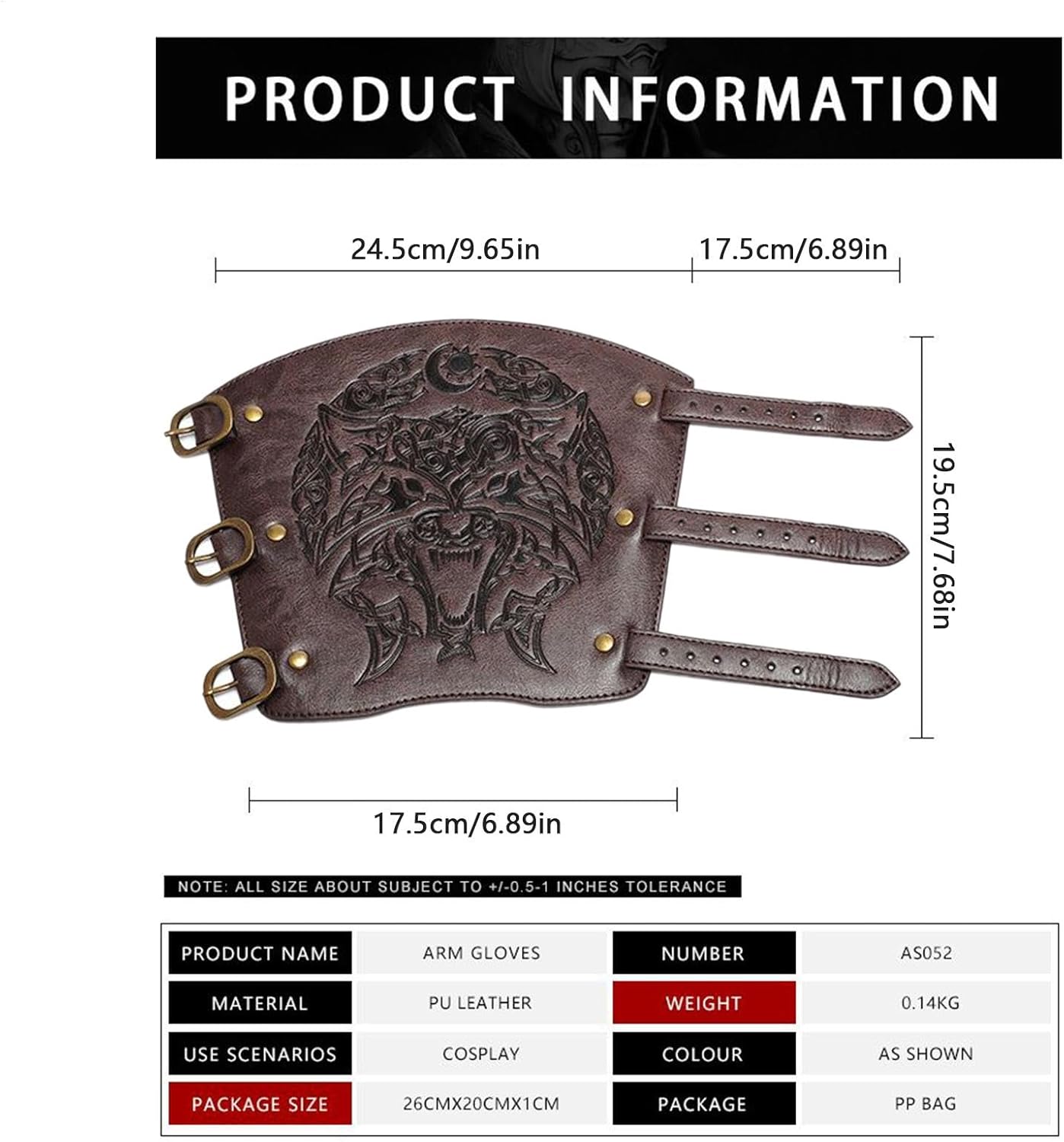 Migliora il tuo cosplay per uomini adulti con queste squisite bretelle. Con un motivo in rilievo e offre un'usura stabile e confortevole. È regolabile per adattarsi a diverse dimensioni del polso e offre una protezione affidabile dell'avambraccio per gli atleti del palcoscenico. Specifiche tecniche: Materiale: pelle PU Dimensioni del prodotto: circa 24,5 x 19,5 cm / 9,65 x 7,68 pollici, lunghezza cinturino: circa 17,5 cm / 6,89 pollici Peso: 140 g per pezzo Colore: nero, marrone, caffè Contenuto della confezione: 2 pezzi * polsini in rilievo Si prega di notare: A causa delle diverse impostazioni di illuminazione e dello schermo, il colore del colore potrebbe differire leggermente dall'immagine. A causa delle diverse misurazioni manuali, si prega di consentire una differenza di 1-2 cm.