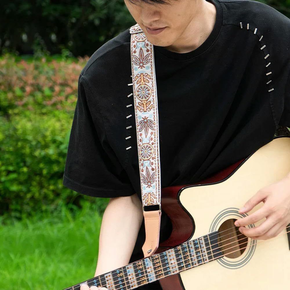 Tracolla per Chitarra Folk, Basso, Chitarra elettrica, Speciale per Ragazzi e Ragazze, Tracolla Diagonale in Pelle e Cotone Personalizzata alla Moda