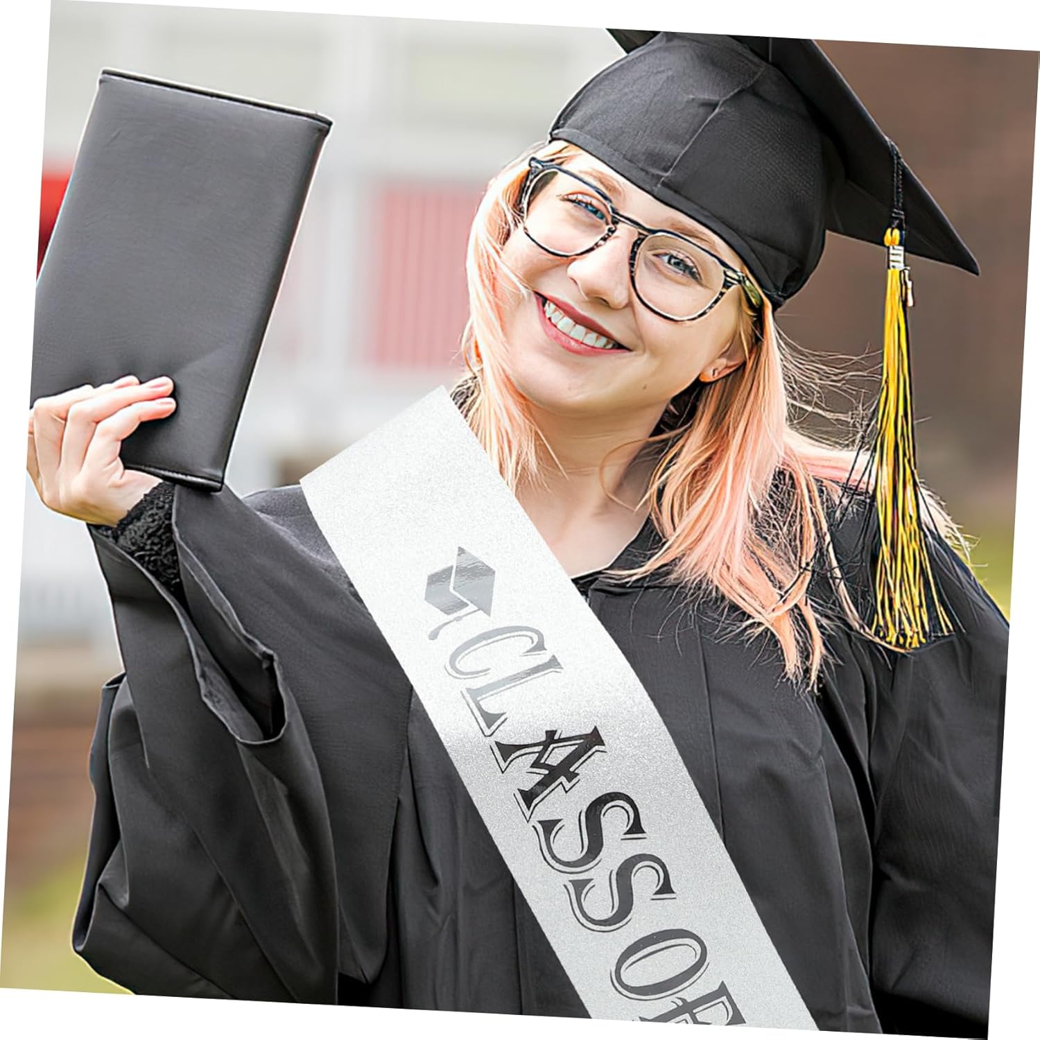 Uso versatile: può essere utilizzata come tracolla o cintura di etichetta, aggiungendo un tocco di eleganza alla tua festa di laurea, decorazione di laurea o fascia di laurea Design accattivante: questa scritta sulla fascia è accattivante ed elegante, perfetta per le tue feste di laurea, altre occasioni, tracolla per la stagione di laurea, decorazione della fascia per festa di laurea Si adatta alla maggior parte delle persone: la fascia è della misura giusta per ciò che ti fa comodo e adatta alla maggior parte delle persone, stola di laurea, fascia di laurea Comodo e pratico: la tracolla morbida garantisce comfort, mentre il design riutilizzabile è pratico Fasce di laurea in grandi quantità Fasce di laurea per festa di laurea Decorazioni per feste di laurea - Realizzata in buon materiale, questa fascia è sicura e affidabile, non facile da strappare o sbiadire, quindi può essere utilizzata a lungo. fascia per la laurea degli studenti