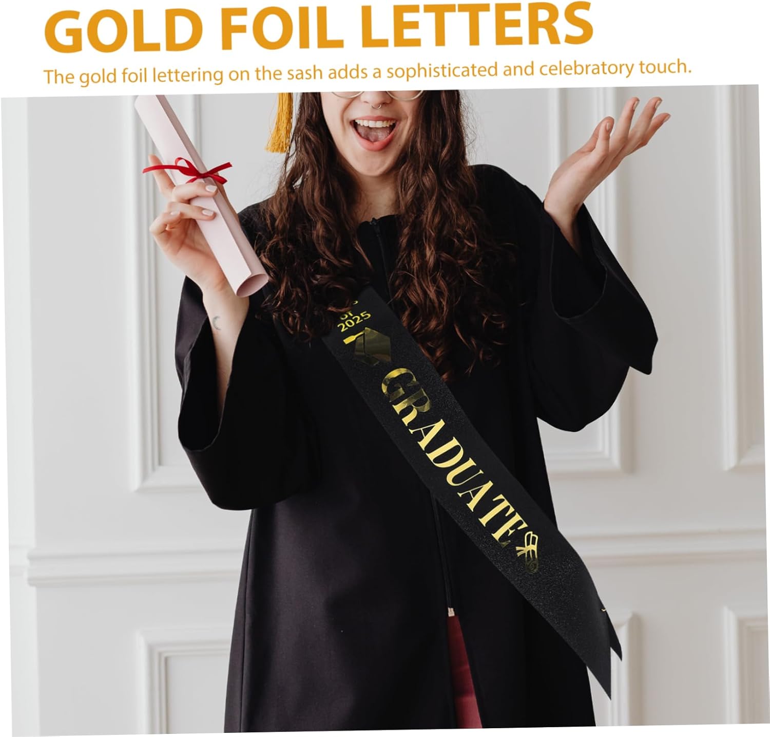 Pronto per l'evento: ideale per feste di laurea del 2025, eventi sportivi, raduni di incitamento e qualsiasi celebrazione di laurea, aggiungendo un tocco di all'occasione, decorazione di laurea, fascia per festa di laurea E riutilizzabili: realizzate in tessuto satinato, queste fasce sono riutilizzabili più volte, offrendo un valore eccellente, forniture per feste di laurea, fascia per laureati Aspetto elegante: la stampa in lamina d'oro sulla fascia offre un aspetto elegante e celebrativo, rendendolo un accessorio essenziale per eventi di laurea, fascia di congratulazioni, fascia Vestibilità universale: progettate per adattarsi alla maggior delle persone, queste fasce sono adatte a entrambi i sessi e a tutte le età, garantendo che tutti possano partecipare alla celebrazione, fascia per la laurea, fascia per addio al celibato Vestibilità universale: il design a taglia unica assicura che queste fasce siano adatte a un'ampia di corporature ed età, rendendole versatili, tracolla, decorazioni di laurea di congratulazioni