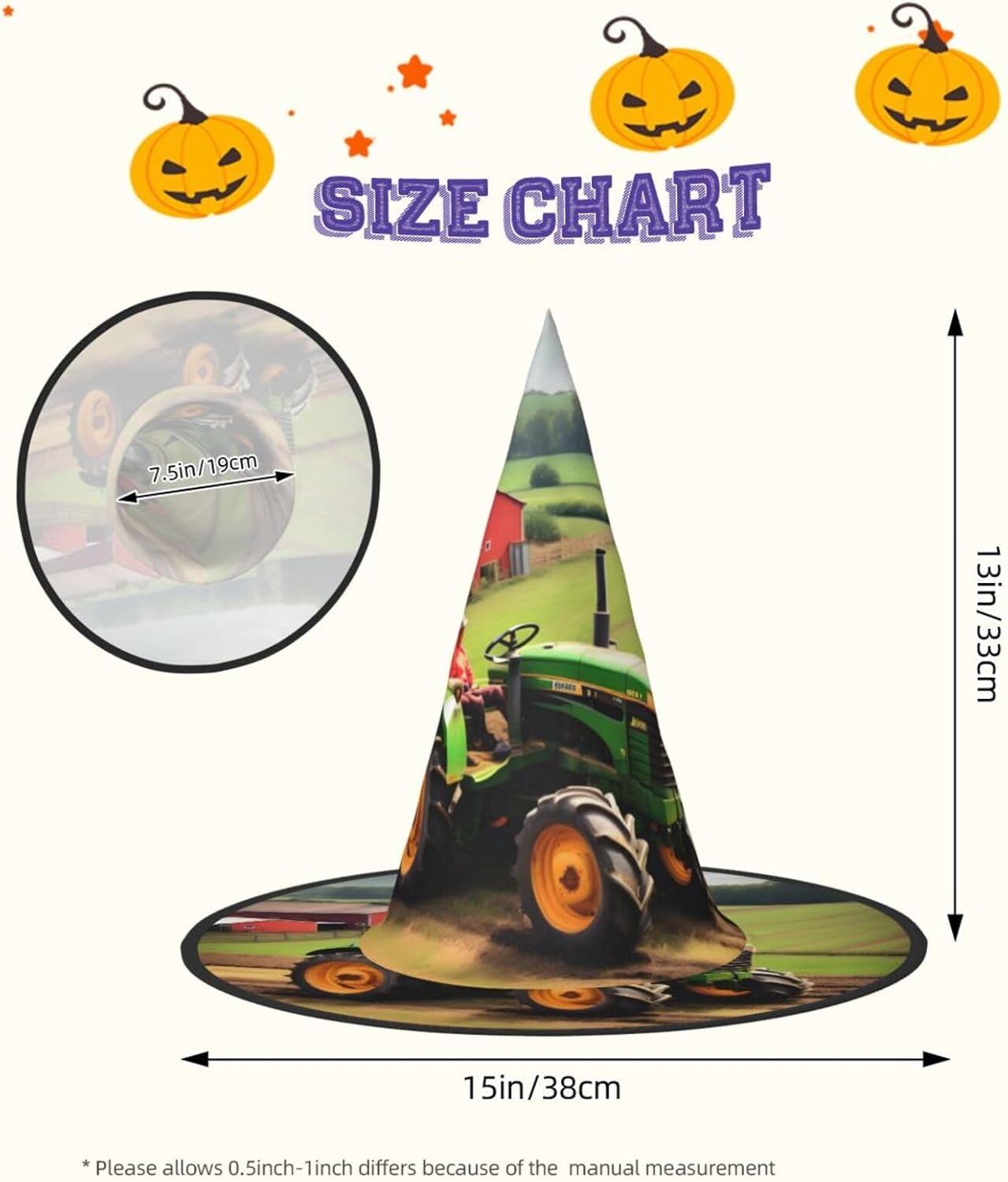 Questo cappello di Halloween con stampa trattore fattoria è una miscela unica di comfort e stile, realizzato in tessuto Oxford. Il suo design compatto e leggero lo rende per portarlo in giro senza il peso. Ha una struttura unica; la parte superiore può essere ridotta e i bordi possono essere attorcigliati e piegati, consentendo una facile conservazione. Il cappello da strega con stampa trattore fattoria che si tratti di una festa di Halloween, una festa in maschera o un gioco di ruolo, il nostro cappello è il tuo accessorio perfetto. Al centro dell'attenzione in qualsiasi evento di Halloween. È anche facile da pulire: lavabile in lavatrice o a mano, si asciuga rapidamente e facile da pulire. Scatena la tua strega interiore questo Halloween con i nostri cappelli da strega alla moda e divertenti! Nota: per una migliore cura, evitare la candeggina. Rendi indimenticabile questo Halloween con i nostri cappelli da mago per Halloween!