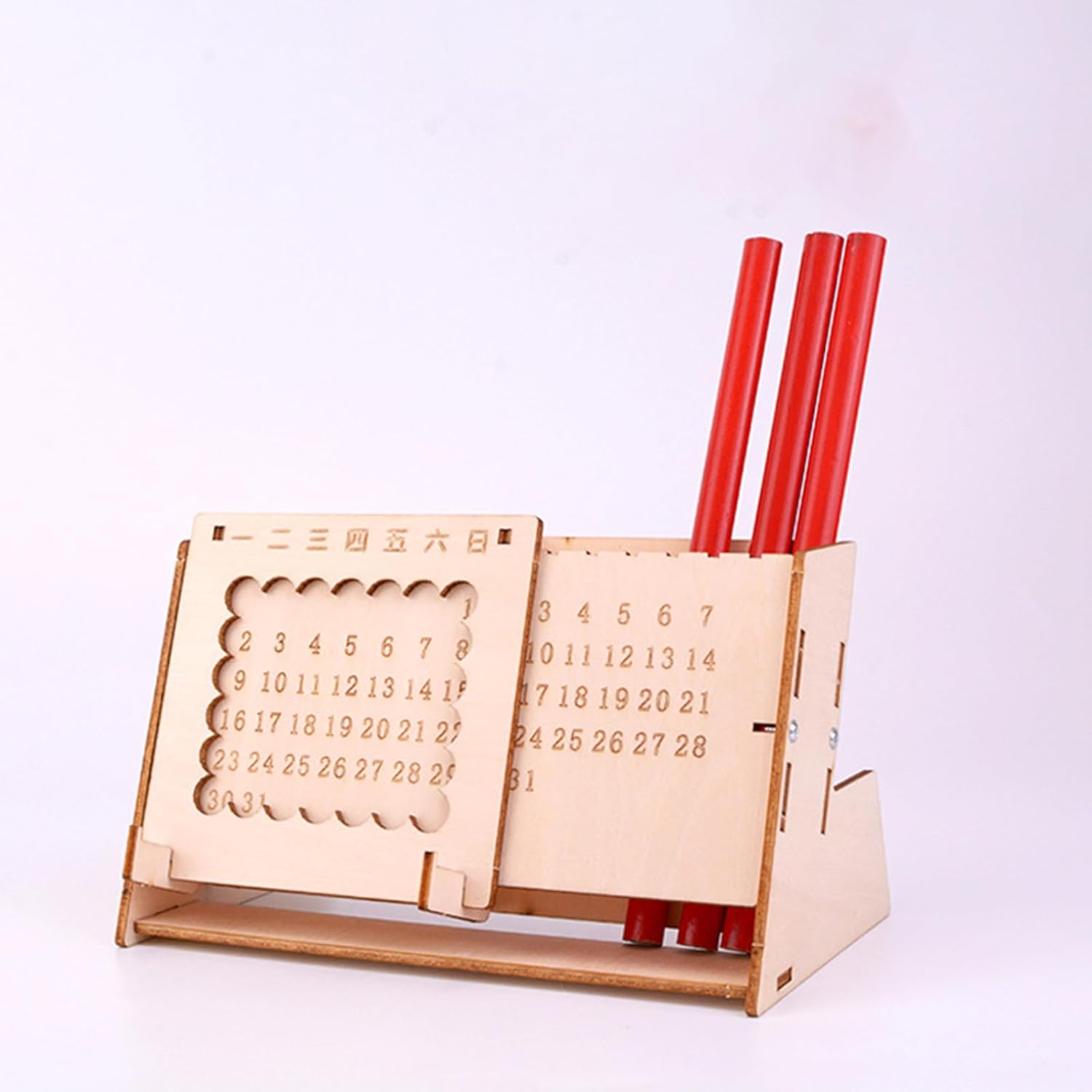 TRACYE Calendario Portapenne Puzzle 3D in Legno,Fai da Te Giocattolo Scientifico,Strumento di Apprendimento Interattivo,Kit di Artigianato Educativo