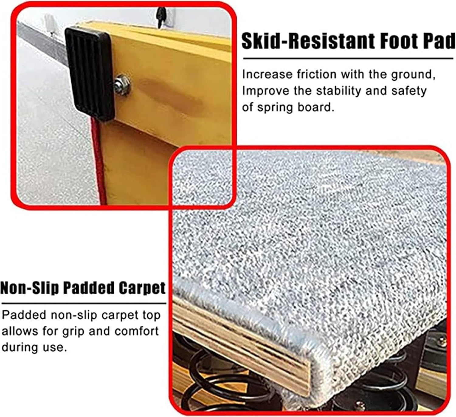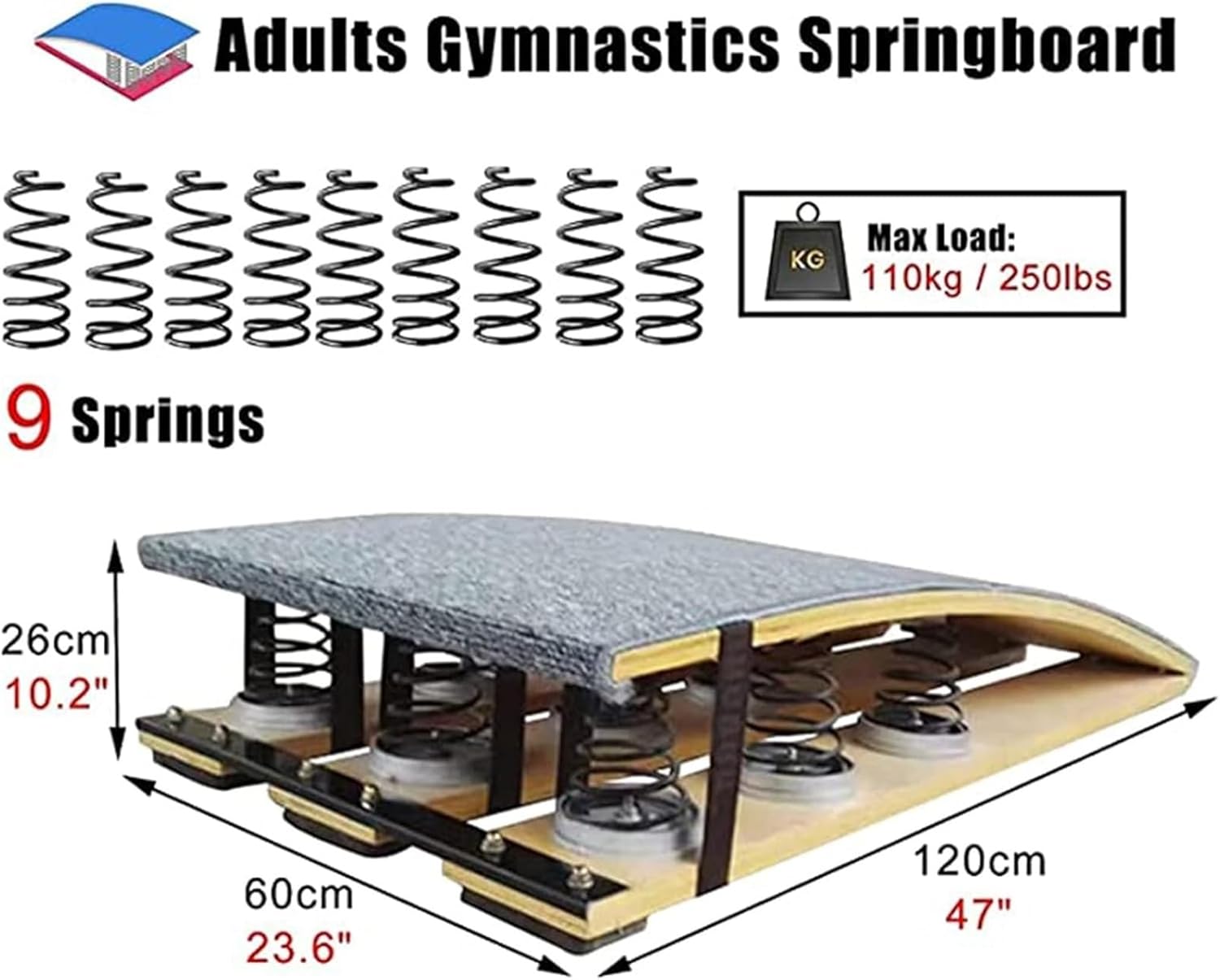 ?【Materiale in legno massello】Realizzato in legno massello di alta qualità, durevole, impermeabile e resistente all'umidità e non facile da rompere. Il tappeto superiore imbottito antiscivolo garantisce presa e comfort durante l'uso. ?【Tavola da competizione standard】Dimensioni: 60 x 120 x 20 cm/23,6 x 47,2 x 7,9 pollici (larghezza x profondità x altezza). Portata: 20 kg/440 libbre. Questa tavola da competizione è adatta sia ai giovani che agli adulti! ?【Progettato per un pubblico adulto】Questo trampolino è ottimo come allenatore di salita alle parallele asimmetriche o per esercitarsi negli atterraggi da discesa, oppure per lezioni di ginnastica prescolare o per migliorare le abilità di volteggio a casa. ?【Molle in acciaio ispessito】Molla interna in acciaio al manganese ispessita, forte capacità portante, forte elasticità, nessuna deformazione, nessuna piastra in acciaio antiruggine fissata. 【Servizio】I nostri prodotti vengono rigorosamente selezionati prima della spedizione, ci impegniamo per una maggiore soddisfazione. In caso di domande sul nostro prodotto, non esitate a contattare il nostro team di assistenza clienti