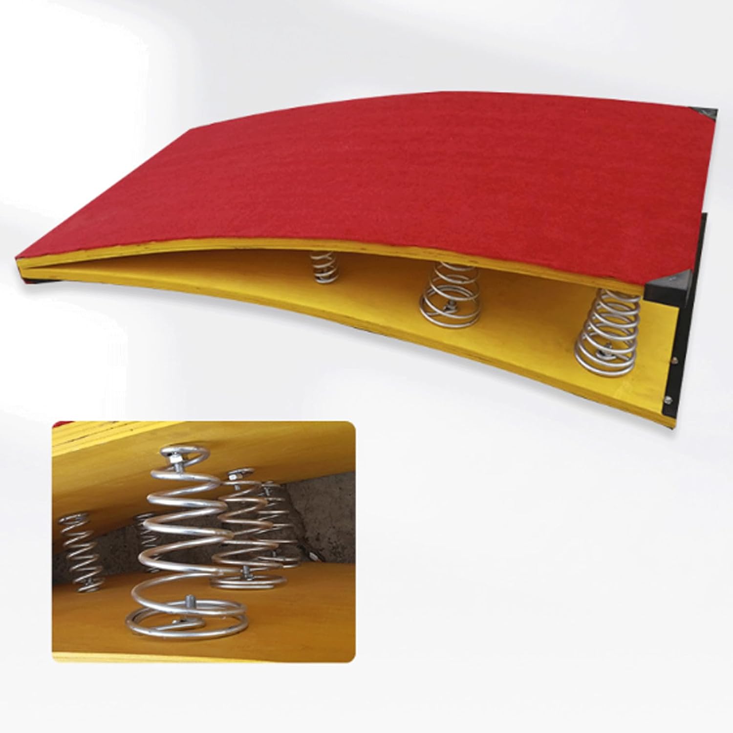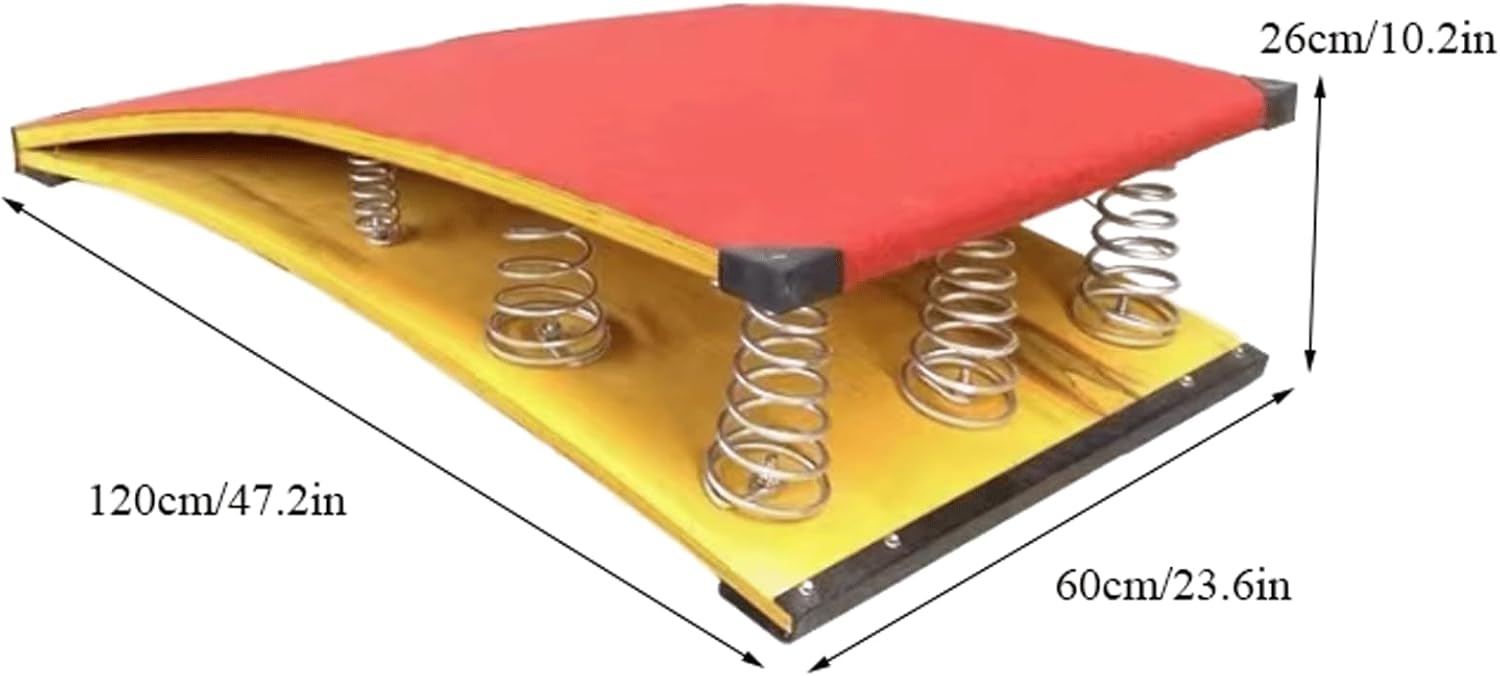ELEVATA ELASTICITÀ - Dotata di molle metalliche rinforzate, questa pedana elastica per ginnastica offre un supporto e un rimbalzo eccellenti. Le molle ad alta elasticità offrono un rimbalzo potente, riducendo l'affaticamento. TAPPETINO ANTISCIVOLO - La parte inferiore del trampolino da ginnastica è progettata con cuscinetti antiscivolo in gomma, che offrono una maggiore resistenza per garantire stabilità e proteggere i pavimenti dai graffi. AMPIA APPLICAZIONE - Ideale per esercitarsi nei salti in alto, nel volteggio e in varie manovre ginniche, questo trampolino è perfetto per sale giochi, palestre domestiche, scuole e centri di ginnastica. FELTRO ANTISCIVOLO - La superficie del trampolino da ginnastica è rivestita con feltro antiscivolo e resistente all'usura di alta qualità, che consente ai piedi di mantenere una buona presa durante il salto, è sicuro e anticaduta e ci protegge dagli infortuni. Adatto a famiglie, palestre, campi di allenamento professionali, centri di ginnastica, club sportivi, scuole, ecc. per eseguire volteggio, salto in alto, salto in lungo, ginnastica e altri progetti.