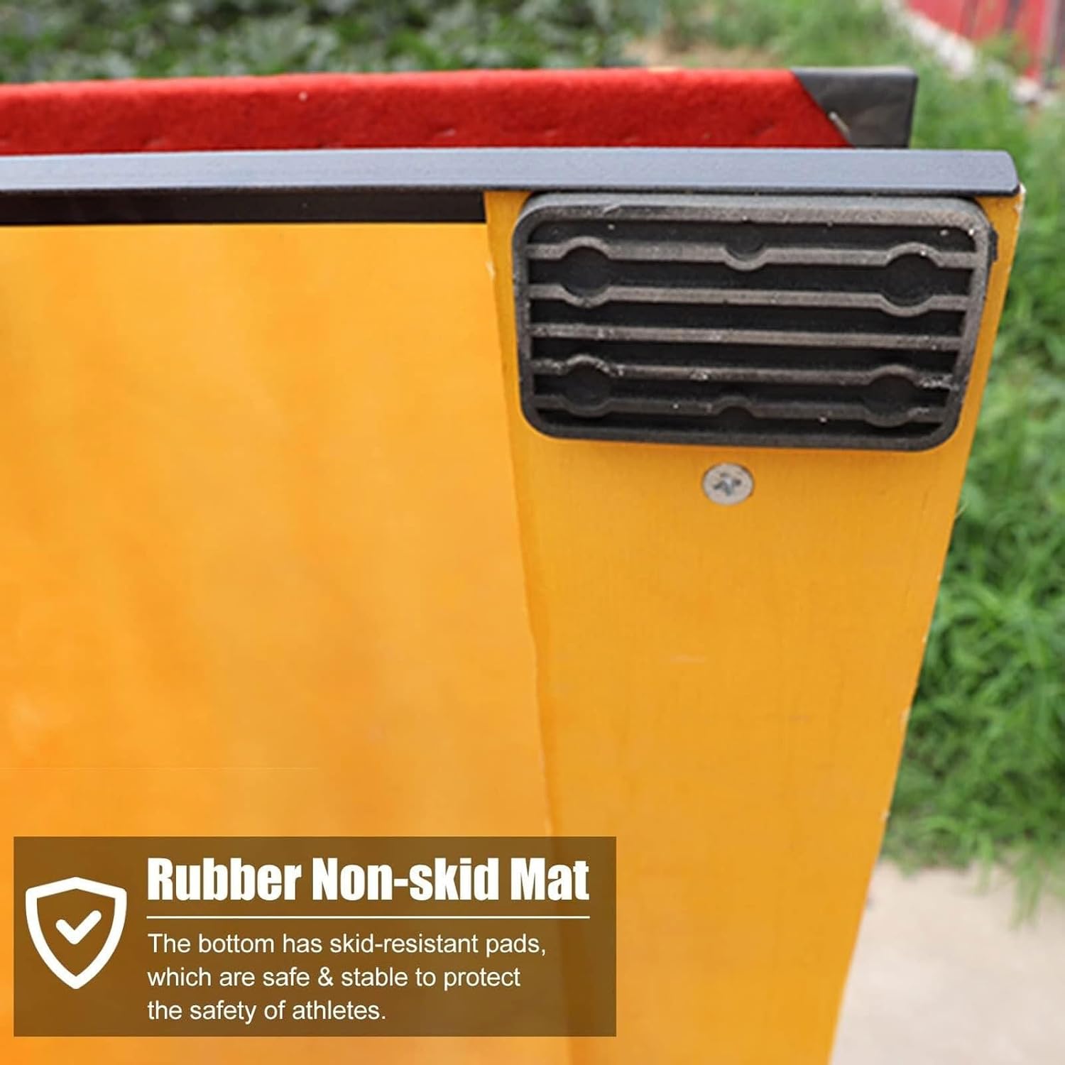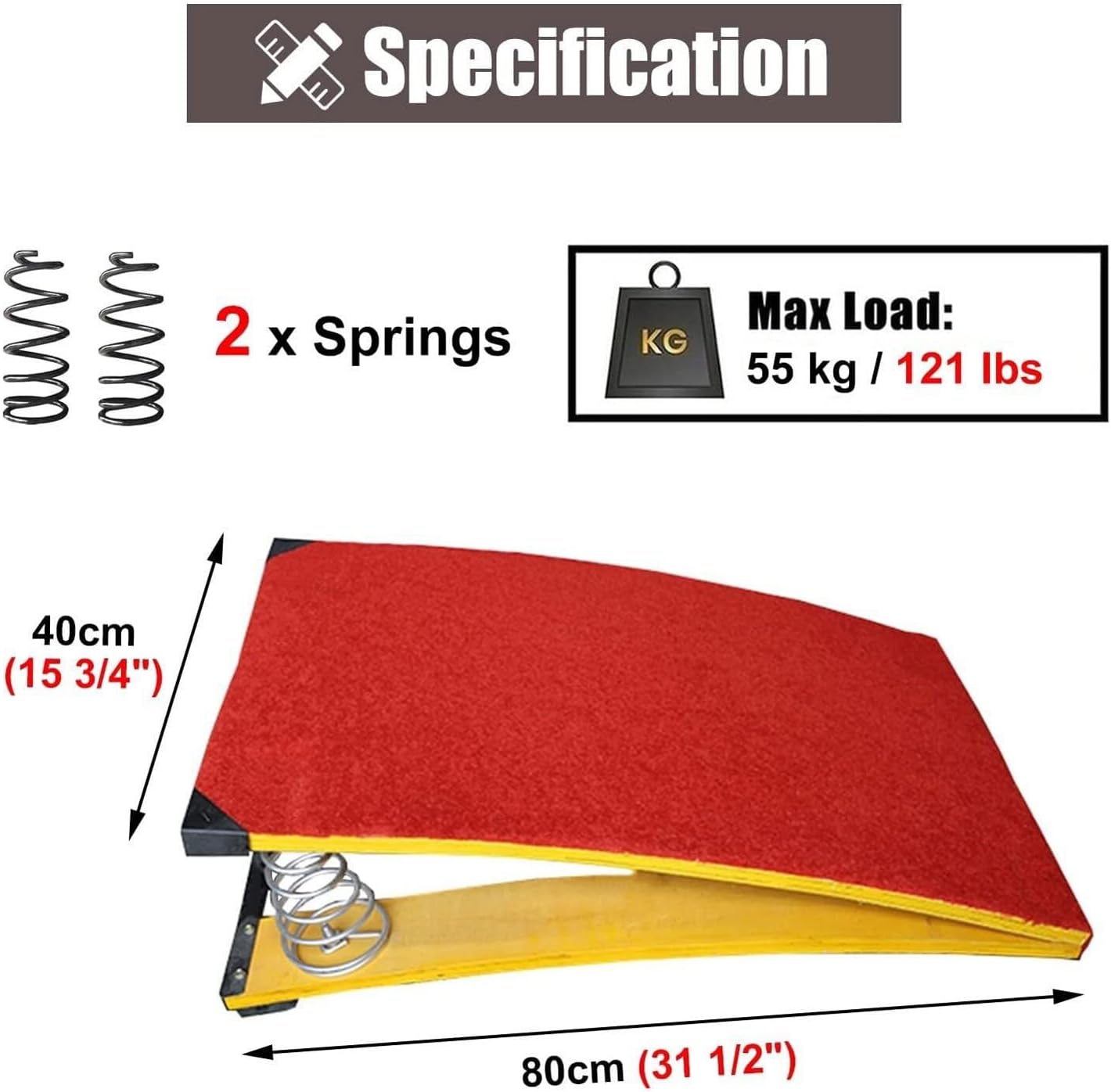 Realizzato con assi di legno duro, elevata capacità di carico, nessuna deformazione, facile da manutenere, può essere utilizzato in qualsiasi condizione atmosferica, adatto per uso interno ed esterno. Le molle ispessite ad alta tenacità hanno grande elasticità e tenacità, non si deformano facilmente, sono sicure e stabili, ti fanno risparmiare energia e saltare più in alto. Design con cuscinetti antiscivolo: la parte inferiore è dotata di un design con cuscinetti antiscivolo, che impedisce al trampolino di scivolare e muoversi grazie al terreno liscio, garantendo all'atleta un salto sicuro. Occasioni d'uso: Usalo per esercitarti nel salto in alto o nel volteggio! Il tuo bambino può anche usarlo per fare percorsi a ostacoli, lanciarsi sul divano, come rampa per il suo camion e altro ancora. La parte superiore del trampolino è dotata di feltro, che non solo non farà male ai piedi, ma fornirà anche una presa sufficiente durante il salto, proteggendo al contempo la superficie del trampolino.
