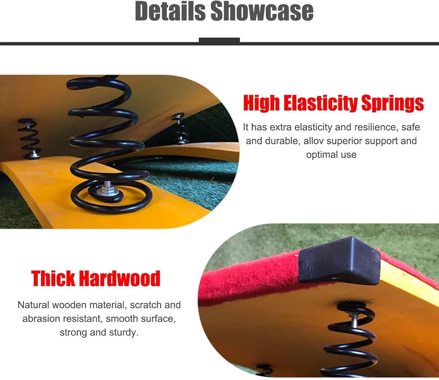 Robusto e: la piastra a molla è realizzata in legno massello e la superficie è realizzata in feltro antiscivolo di alta qualità, antiscivolo, assorbente del sudore, sicuro, stabile, indeformabile e non danneggia i piedi. Molla ad alta tenacità: questo trampolino sportivo è realizzato con una molla ad alta tenacità, che ha una buona elasticità e non si arrugginisce o si deforma facilmente, offrendoti una migliore sensazione di rimbalzo. Tappetino antiscivolo in gomma: sul fondo di questo trampolino da ginnastica è presente un tappetino antiscivolo scanalato per aumentare la resistenza al contatto ed evitare scivolamenti. 4 Molle in acciaio altamente elastiche: elevata tenacità e molla ispessita, elasticità e resilienza. Attrezzatura sportiva multiuso: può migliorare la tecnica del salto, esercitarsi nello smontaggio e nell'atterraggio.